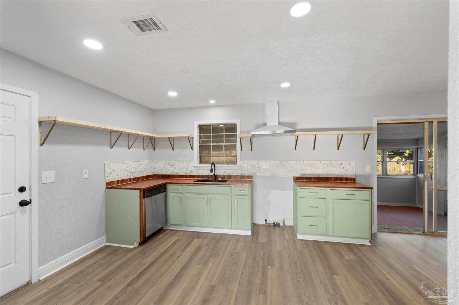 Nicely remodeled 3/2 New paint, new tile in bathrooms, new cabinets in kitchen, butcher block countertops,new stove, new lvp floors throughout. Just waiting on you to call it home! Updated roof 2021, storm windows, new gas water heater. There is a large screened/enclosed rear porch, 35x10, for your enjoyment. There is also an RV Hookup and extra parking pad for your RV!