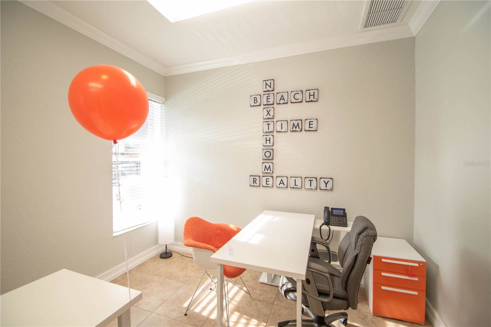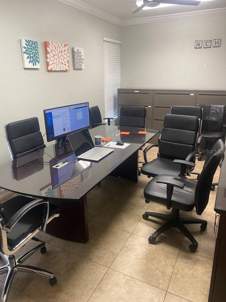 giving this location a front and center marketing spot for meeting and greeting with locals and those that wish they were locals! The current configuration has eight private offices, seven of which are approximately 7’8” X 8’10.” There is a larger office at