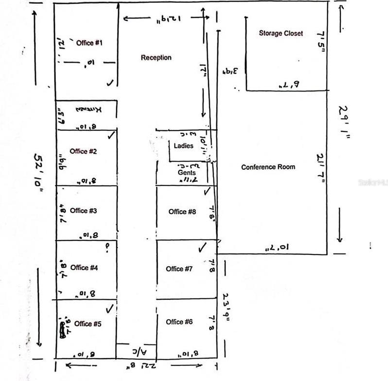 X 10’7” conference room, which enjoys natural sunlight from three windows! You will be pleased to know that additionally, there is a 7’5” X 6’7" storage room. Finally, there are two restrooms and a small copy room/kitchen that is 6’3” X 8’10.” The property