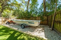 yard is easy to maintain, thanks to convenient turf that provides a beautiful, mess-free space for outdoor enjoyment. Storage is a breeze with one 8-foot gate and one 12-foot gate, perfectly easy access for cars, boats, and toys. Flood Zone X means peace of