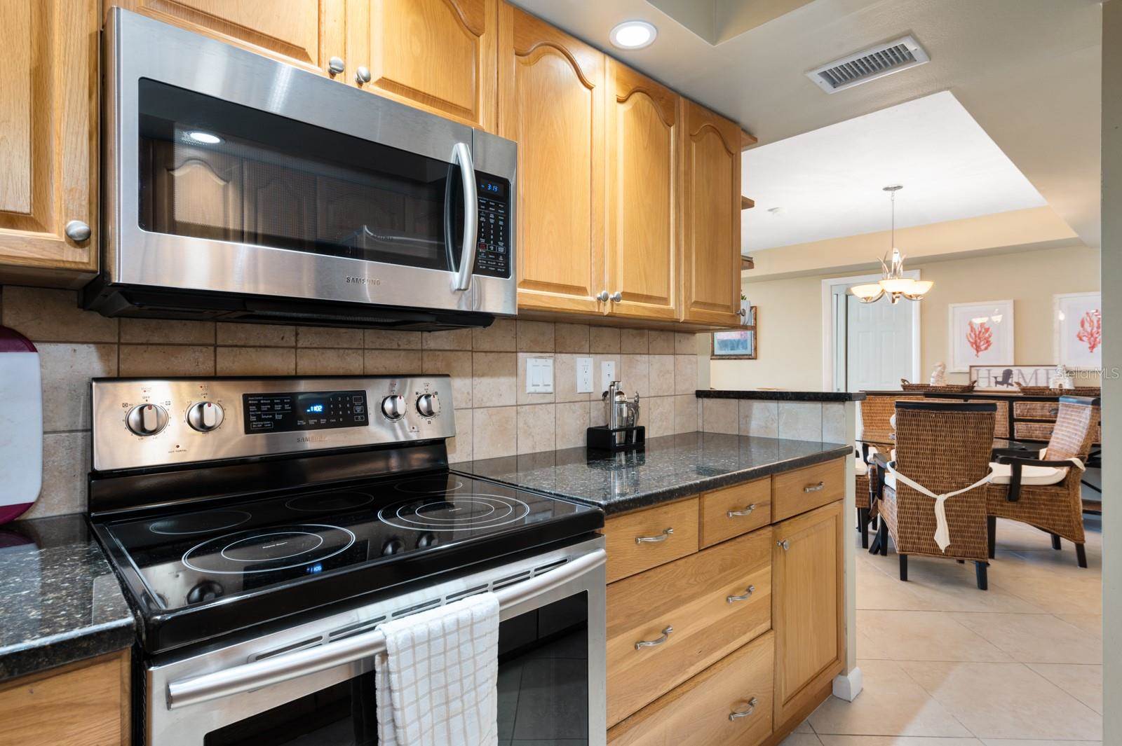 kitchen with stainless steel appliances and granite counter tops. Both bathrooms have also been exquisitely updated to maximize space and comfort. In addition to these interior updates, both bedrooms are furnished with king beds and there is a full sleeper