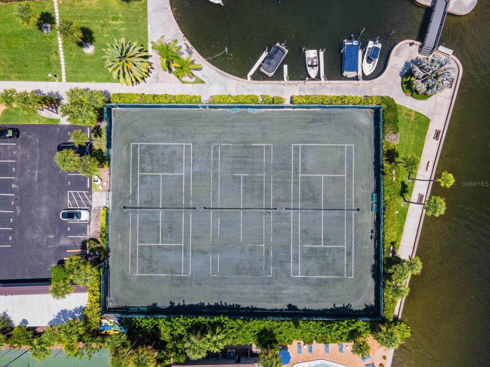 of resort-style amenities, including: 2 heated pools, newer fitness center, his/her saunas, 3 Har-Tru tennis courts, outdoor BBQ grilling patio, bike storage, kayak storage/launch and a beautiful marina to dock your boat (slips available first come first serve
