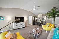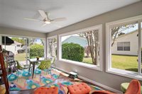 bowling area. Shopping and restaurants choices are endless!!! This home is a MUST VISIT!!! Tons of upgrades, from appliances, countertops, light and fan fixtures, barn door, bathroom fixtures, enclosed lanai, and extra cabinets in the garage, and so so much