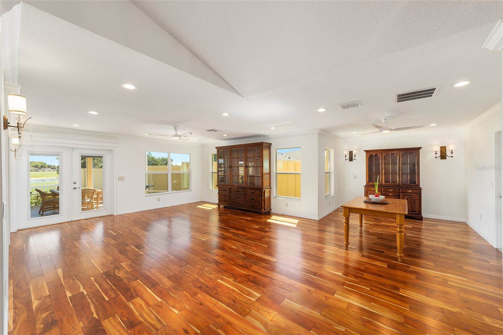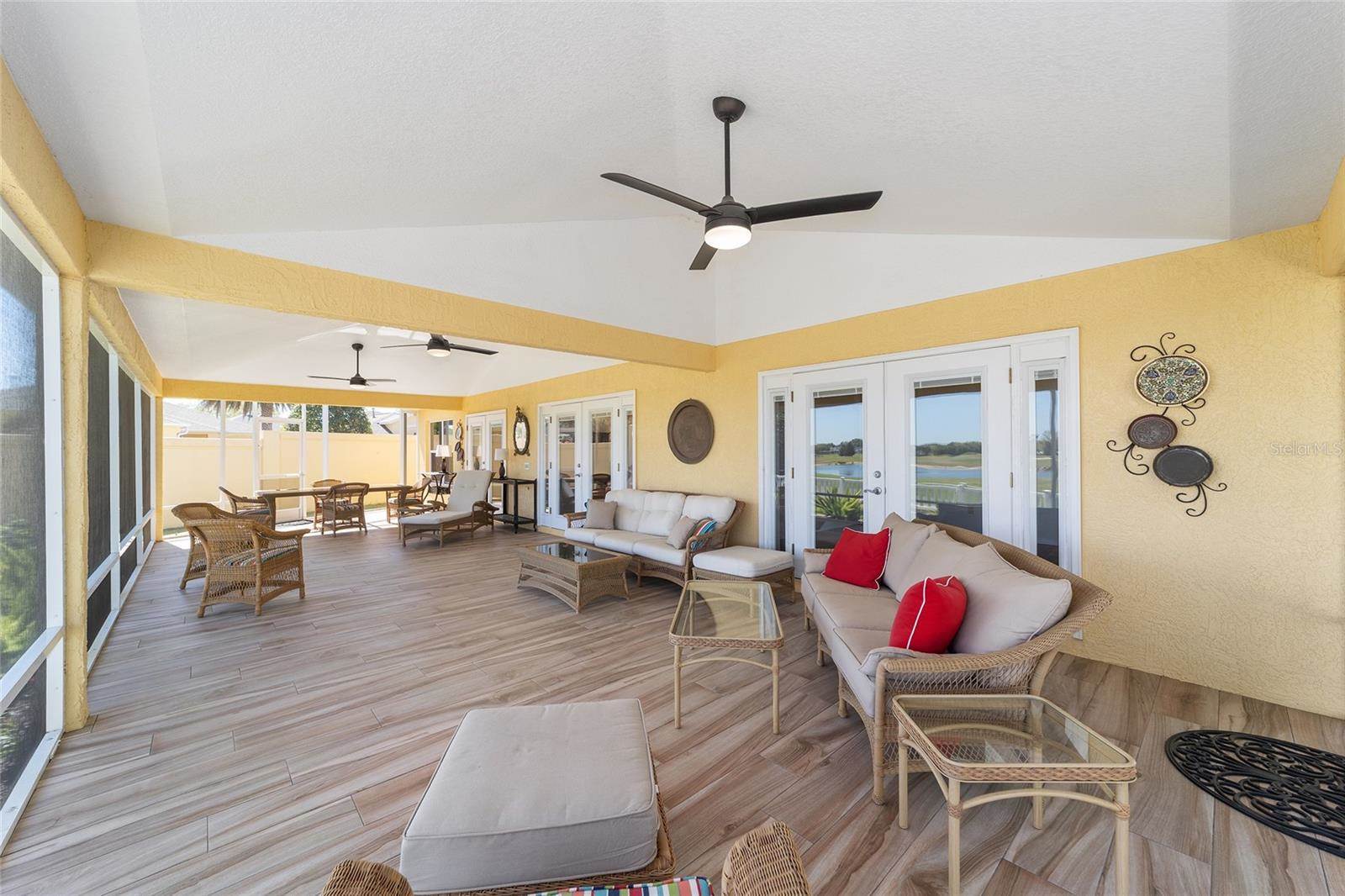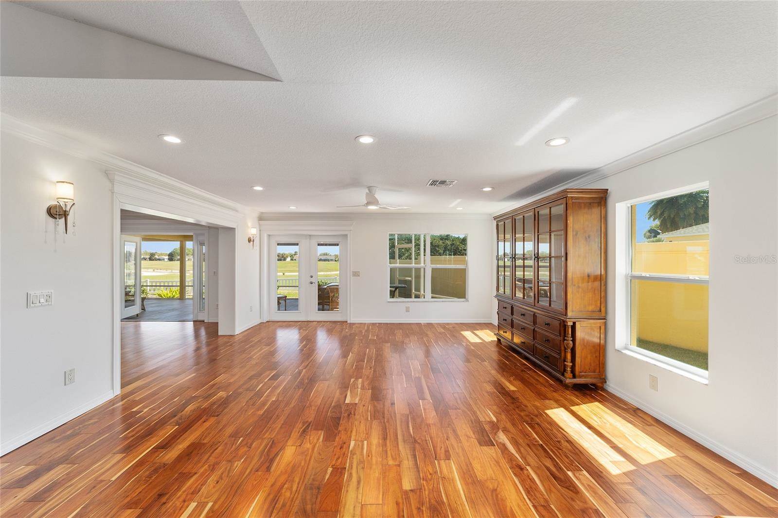 included adding a FAMILY ROOM, BUTLER’S PANTRY, 40’ X 16’ COVERED LANAI with BIRDCAGE, GOLF CART/STORAGE GARAGE (room for 2 golf carts) with MINI-SPLIT for climate controlled environment, 3 French doors for entry to the lanai from the primary bedroom, living
