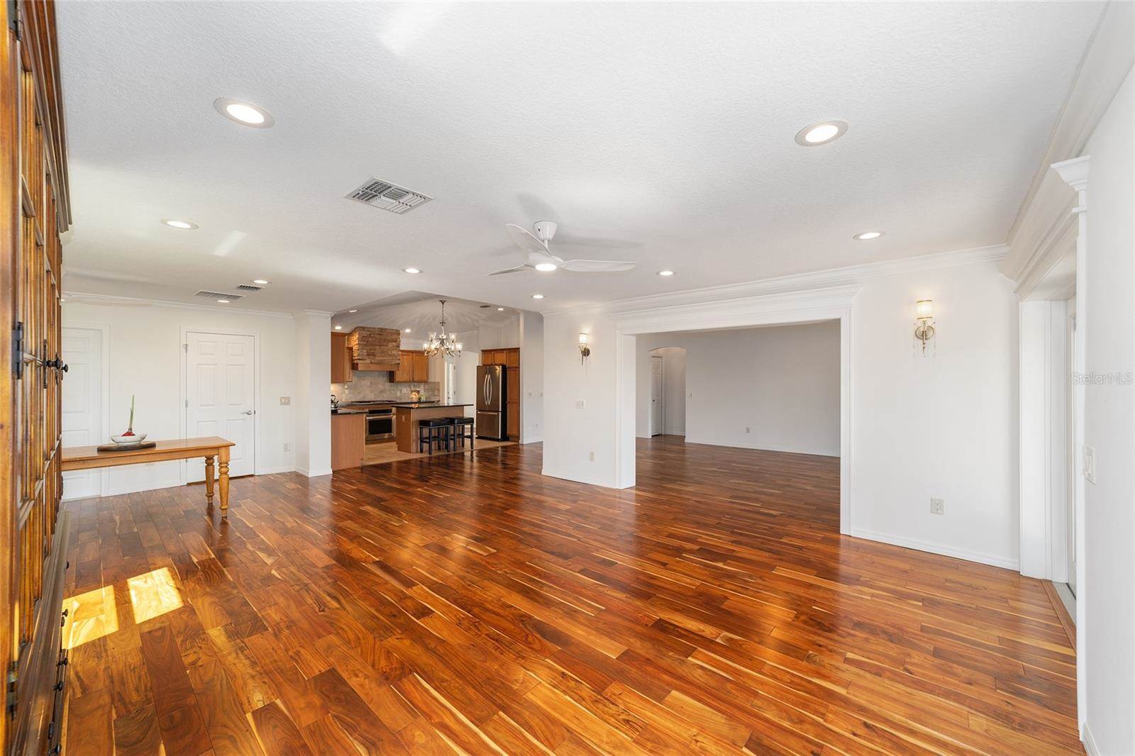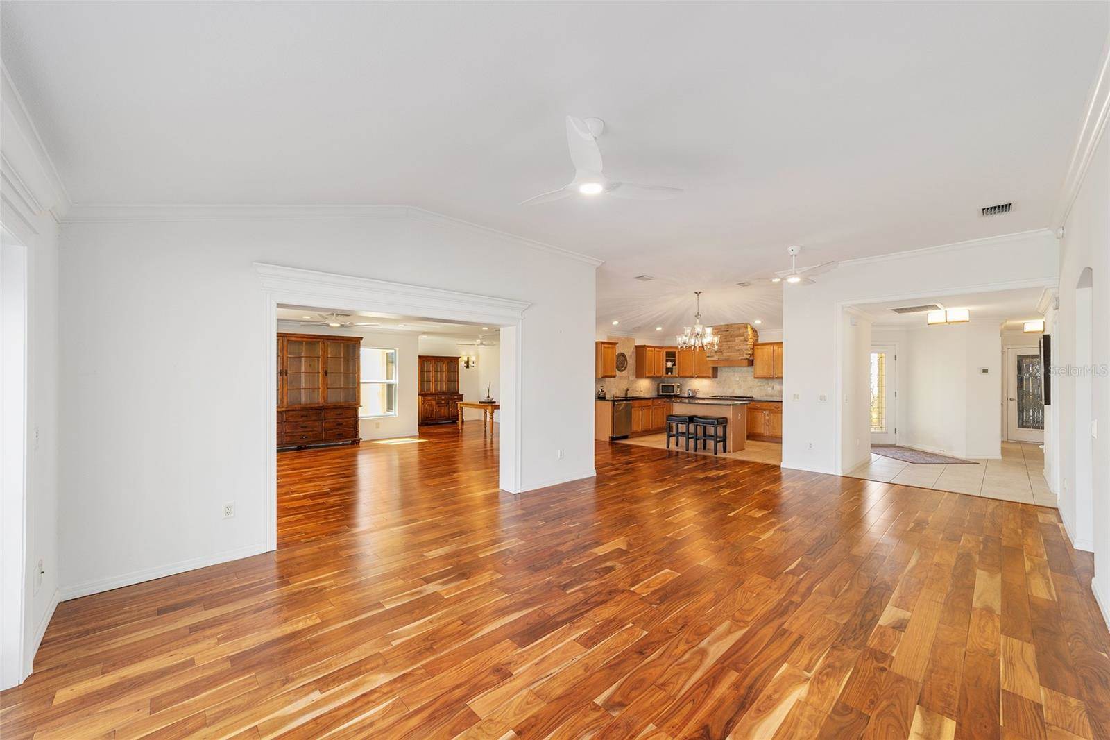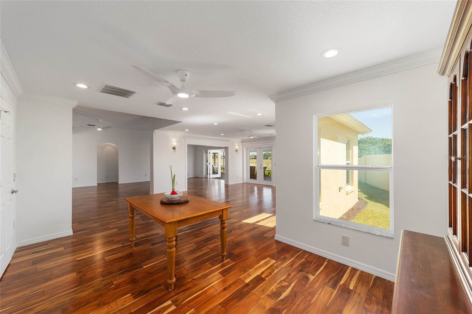 included adding a FAMILY ROOM, BUTLER’S PANTRY, 40’ X 16’ COVERED LANAI with BIRDCAGE, GOLF CART/STORAGE GARAGE (room for 2 golf carts) with MINI-SPLIT for climate controlled environment, 3 French doors for entry to the lanai from the primary bedroom, living