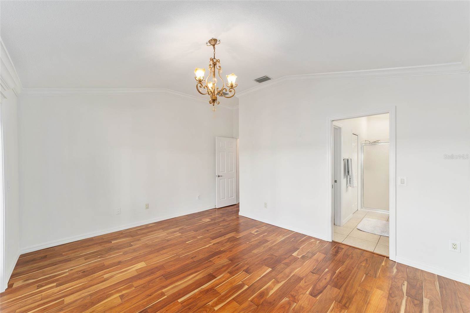 above, upscale STAINLESS APPLIANCES, GAS COOKTOP with stone trimmed HOOD. You’ll find all new HIGH END light fixtures and fans and CROWN MOLDING throughout. 2018 ROOF, NEW HVAC, AND 2018 HOT WATER HEATER. The primary bedroom has French doors that open out