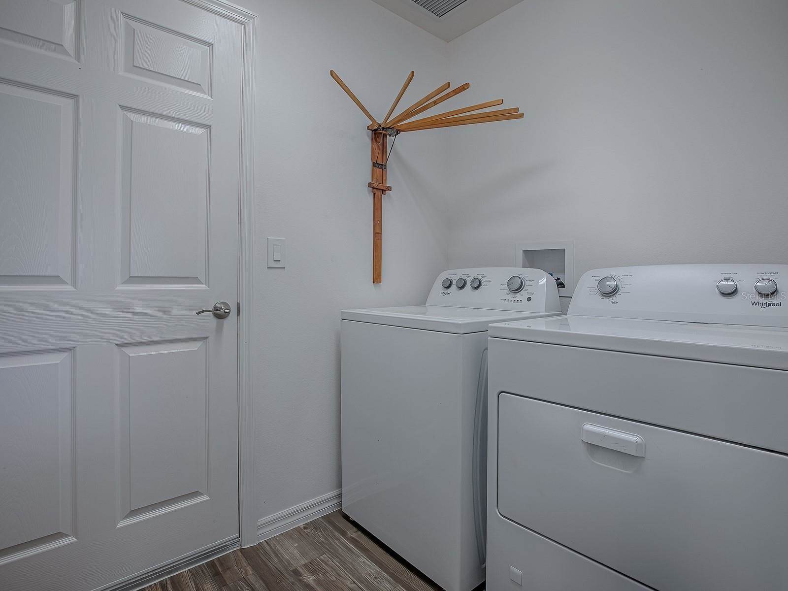 large WALK-IN PANTRY, and a convenient breakfast bar. There is an inside laundry room and the washer and dryer do convey with the home. You'll also appreciate the expanded 2 car garage. The primary bedroom has a tray ceiling and large window for lots of natural