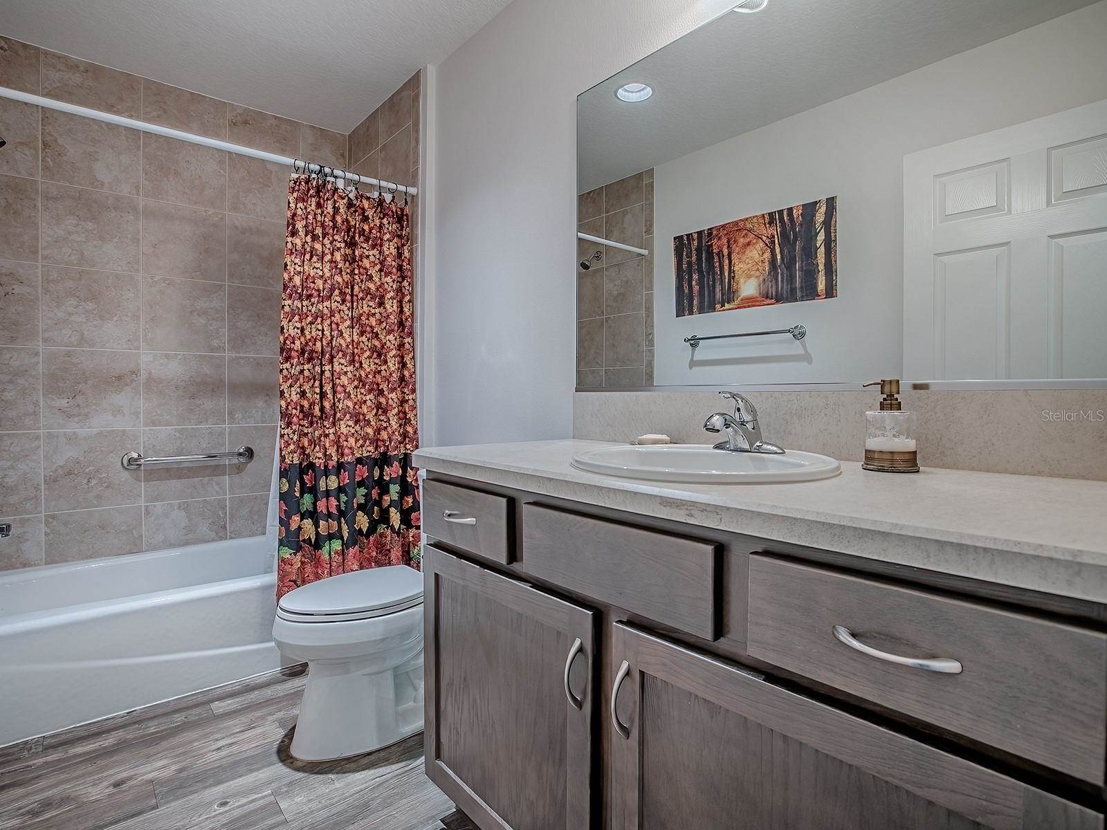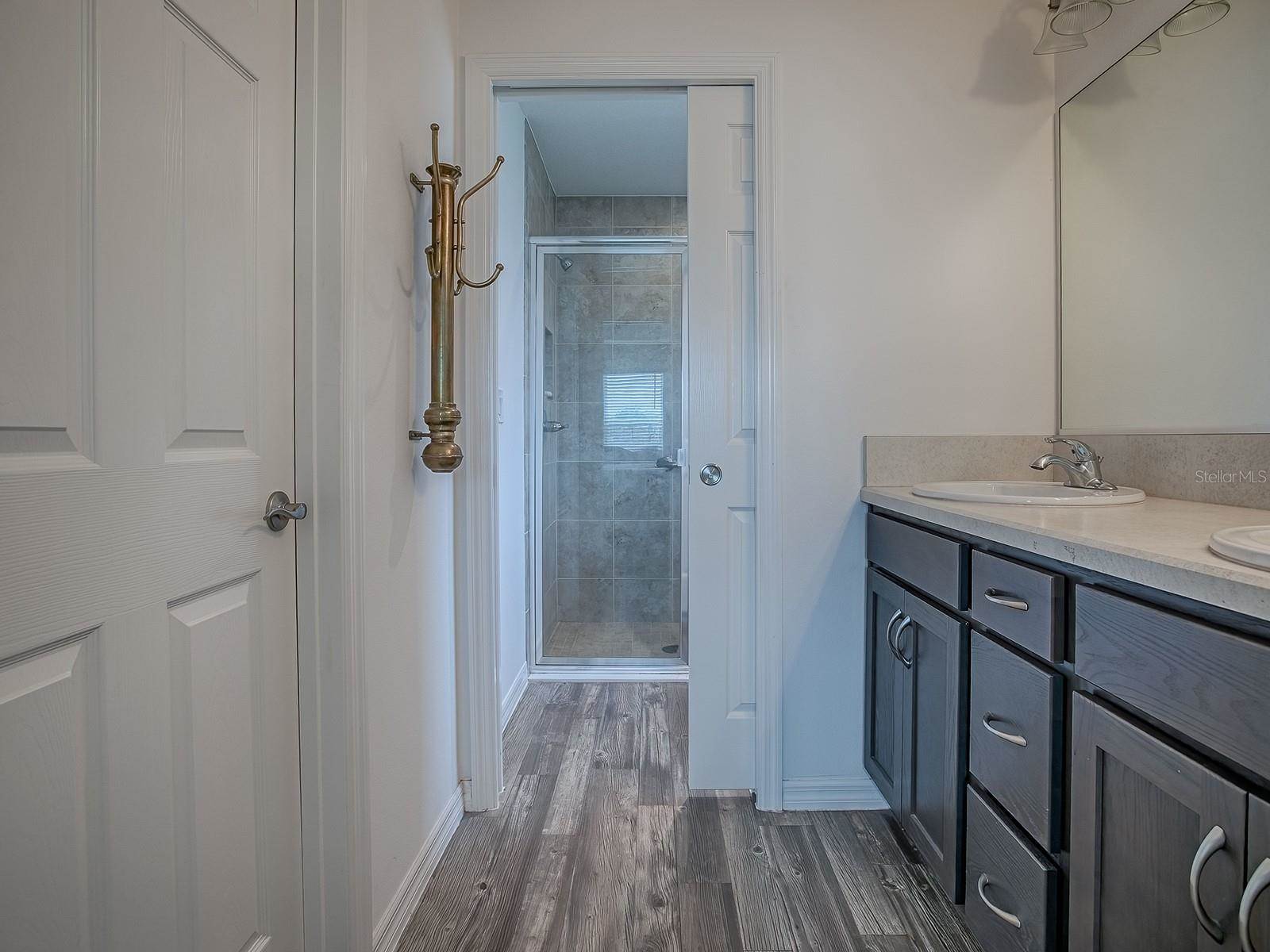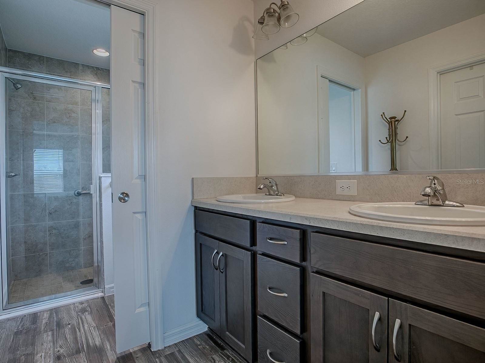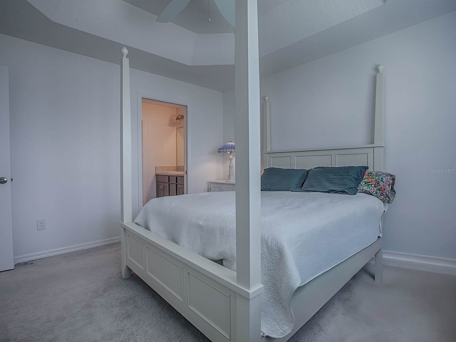 lighting, and an EN-SUITE bath. The bath offers dual sinks, a large WALK-IN CLOSET, and a pocket door that leads to the toilet and tiled shower. The 2nd and 3rd bedrooms have large closets and their own guest bath with tub/shower. The screened lanai is a great