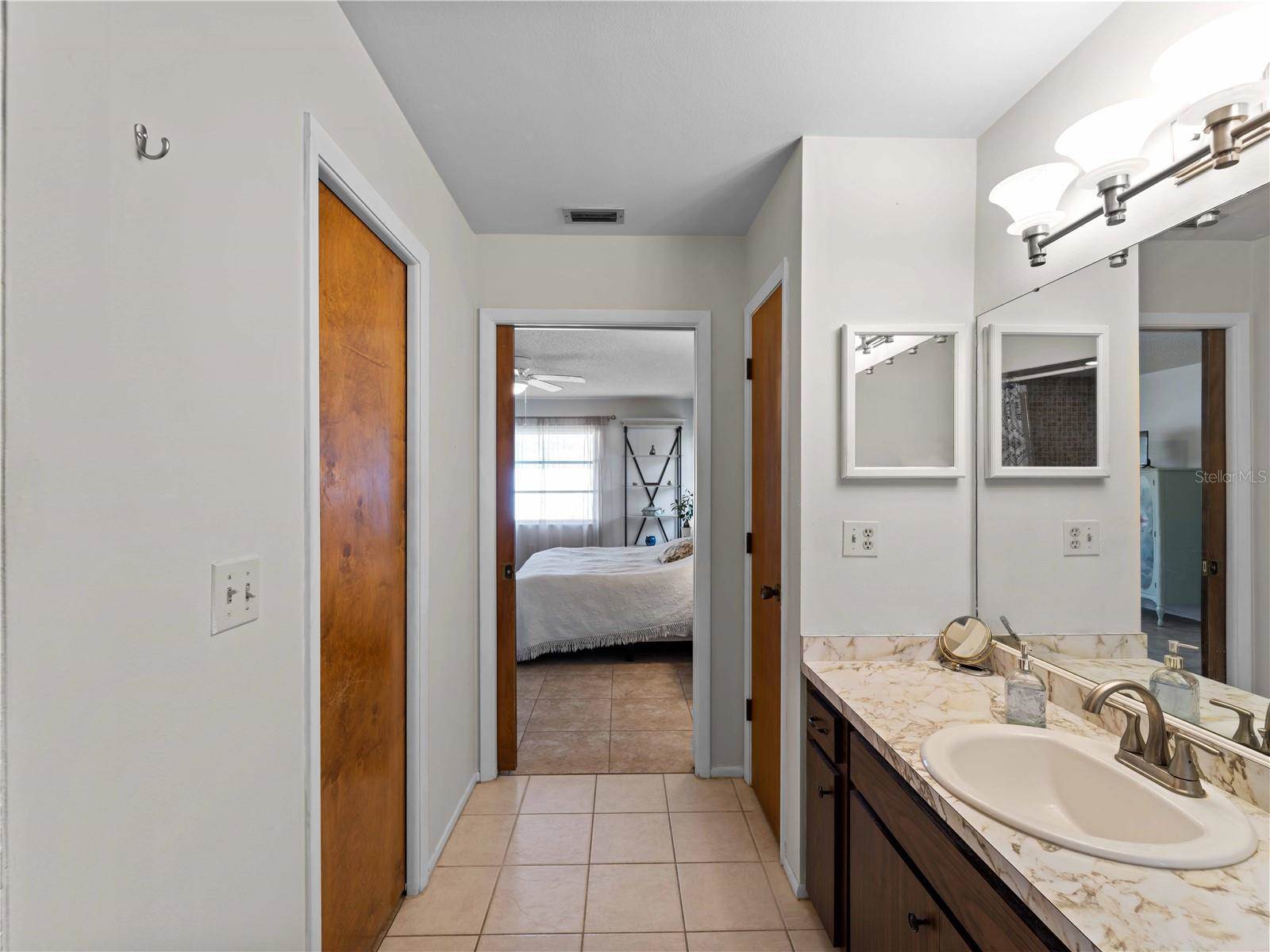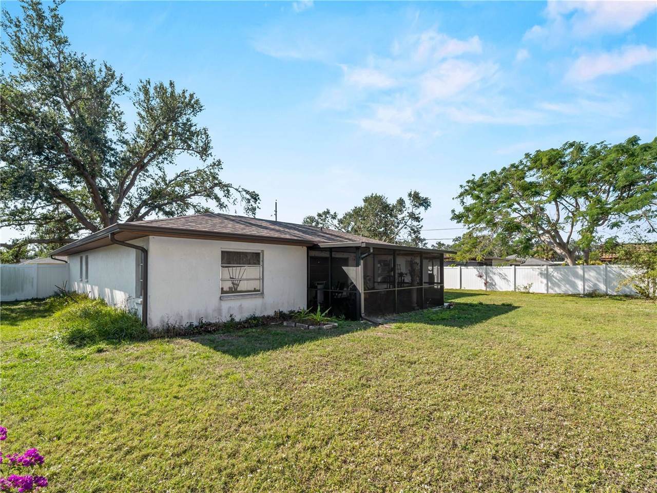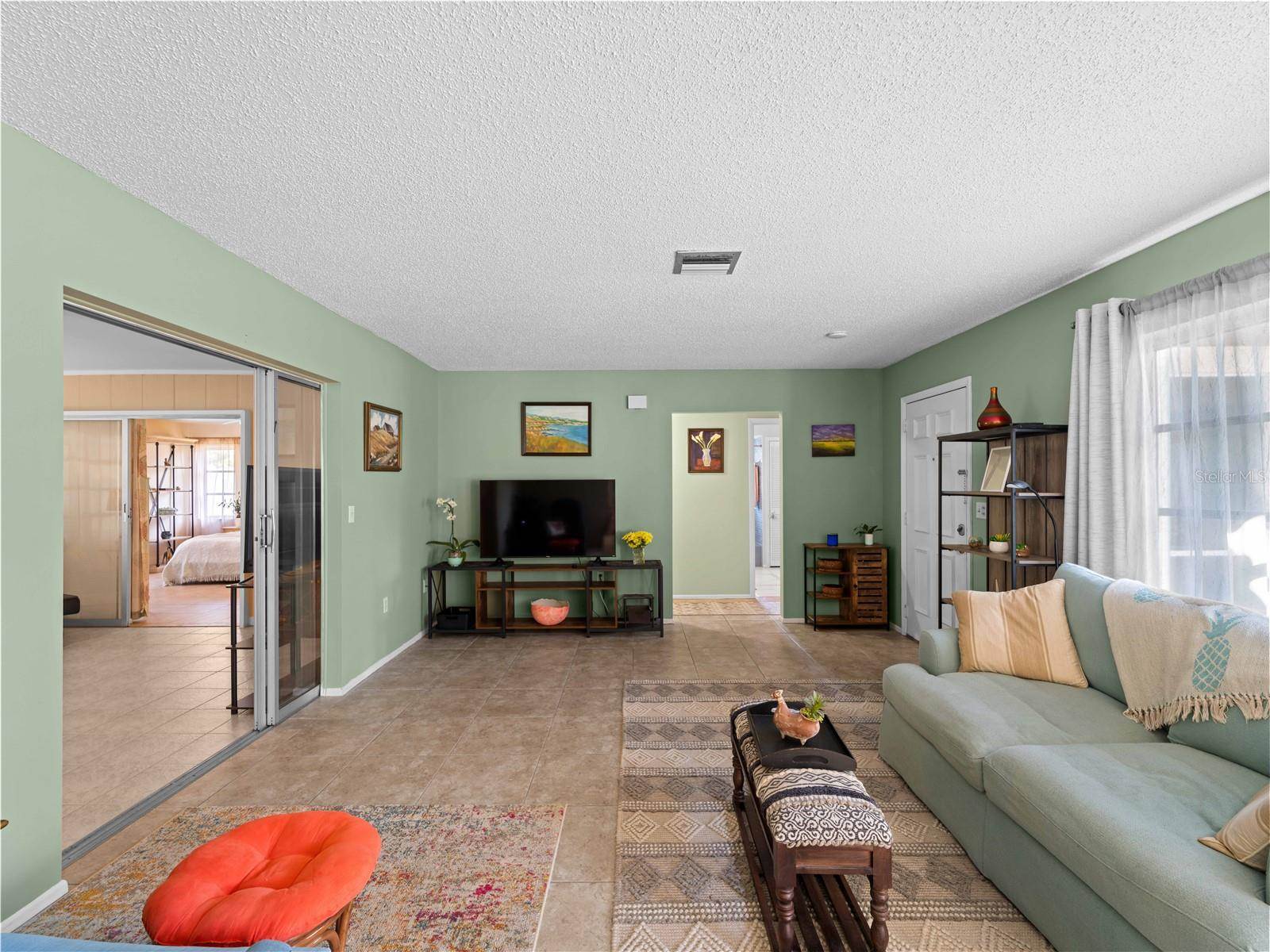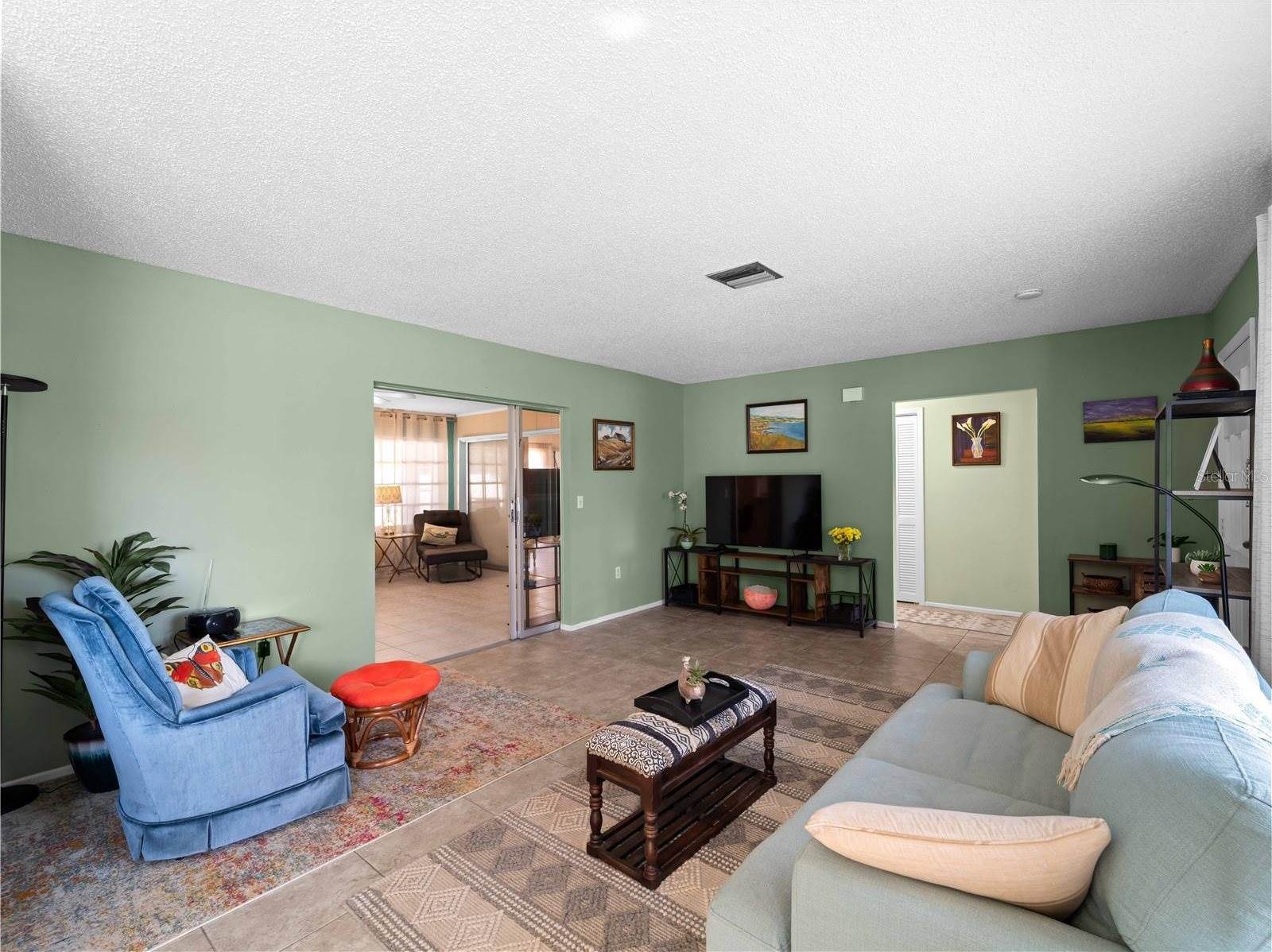 The large living room flows seamlessly into a bright Florida room, offering the perfect spot to unwind or entertain. The private primary suite includes an ensuite bath with two walk-in closets, providing plenty of storage and organization options. The well-designed