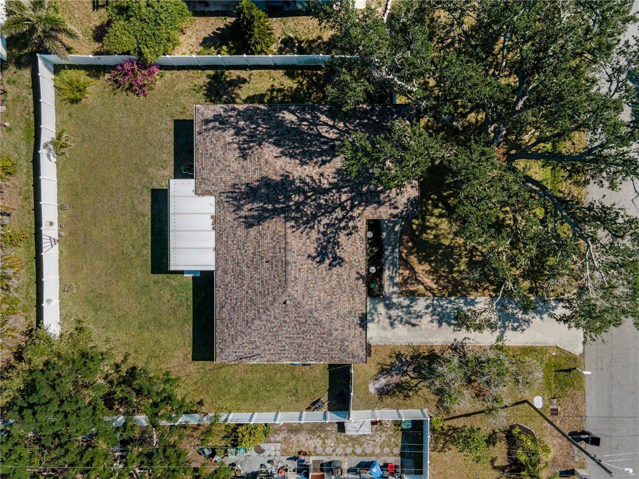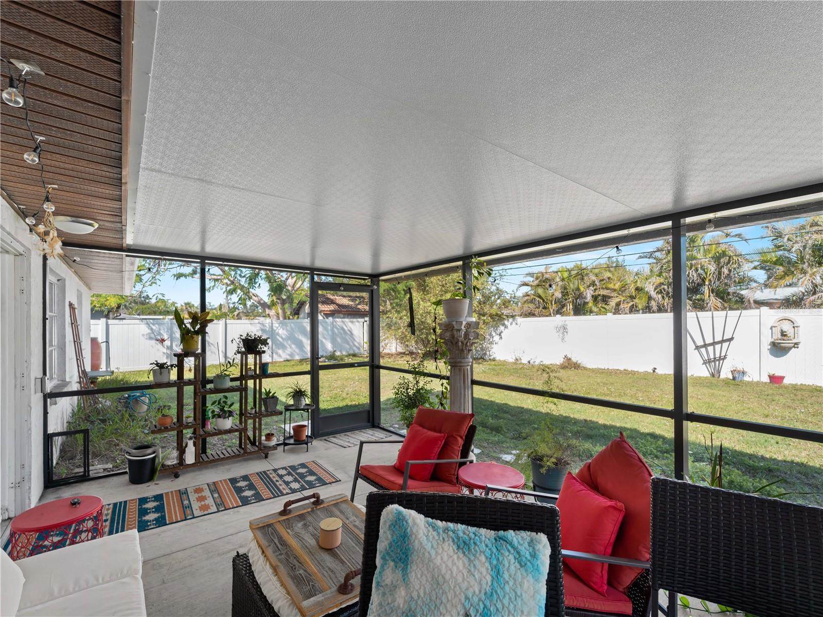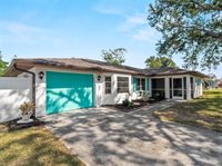 setting. Additional features include an interior laundry room, a one-car garage, and recent updates such as a new roof (2021), lanai, gutters, and screened front porch (2022), as well as new sinks, toilets, and faucets (2022), and a vinyl fence (2022). The