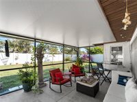 property is located in a non-flood zone and benefits from city water and sewer. A rain barrel collection system is available to keep the landscaping lush and vibrant. Just minutes to the beach, Sharky's On The Pier, downtown Venice, schools, parks, and golf