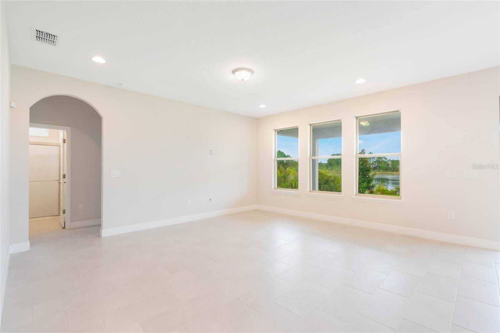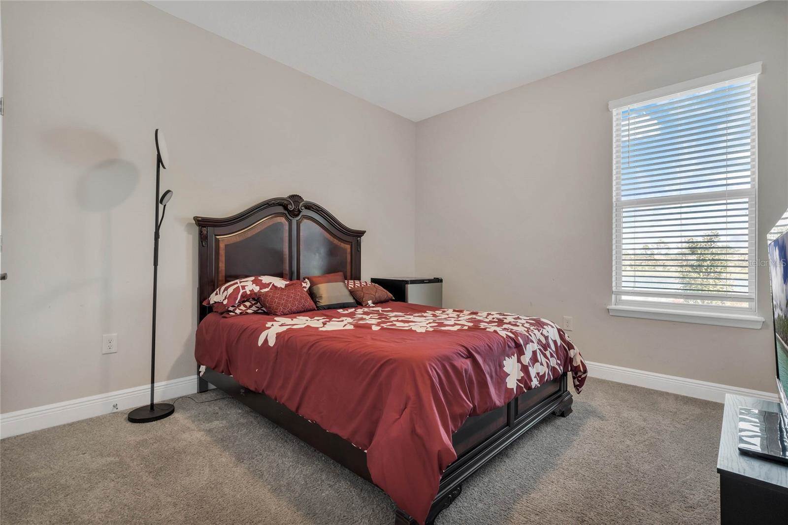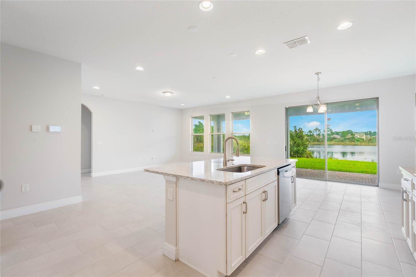 Seller motivated! Fabulous Torrey model with stunning water views and amazing Disney fireworks! This spacious 5 bedroom, 4 1/2 bath home has room enough for everyone! The open concept gourmet kitchen comes complete with a butler pantry, beautiful stone countertops, and large island. Transitioning from kitchen to family room and lania is a breeze as the open floor plan and generous room sizes are a welcome theme throughout the home. A first floor guest bedroom and full bath is both accommodating and wonderfully private! Heading upstairs is also a delight! The massive loft is nicely bordered with three guest bedrooms, each one ample in size and comfort. The primary suite and private bath boast incredible sunrise lake views each morning! The Waterleigh amenities include 2 beautiful clubhouses with resort style pools, fitness centers, putt-putt golf, beach volleyball, tennis, lake view BBQ/picnic area, and dog park. Call and schedule a private tour today! You won't be disappointed!!