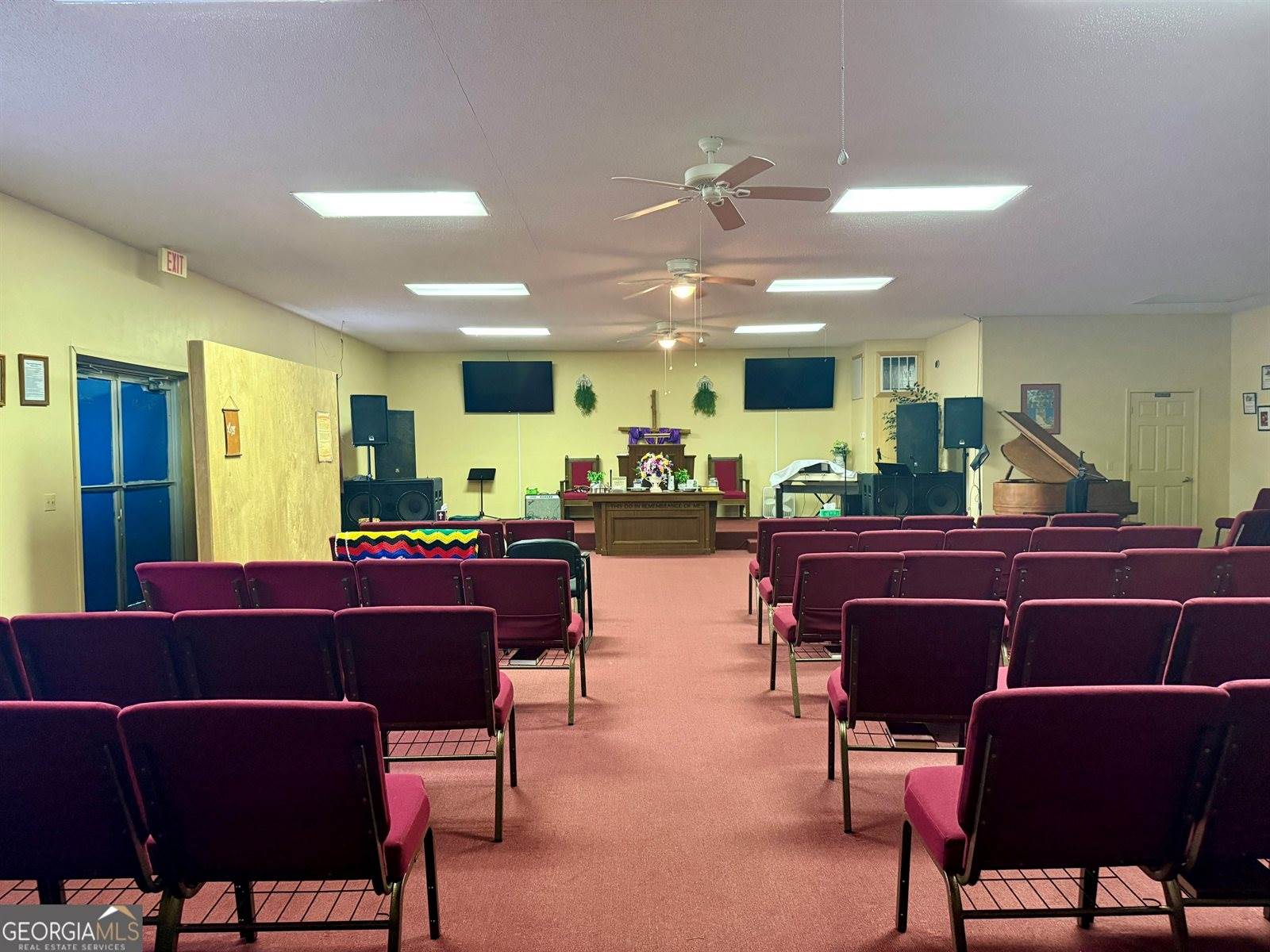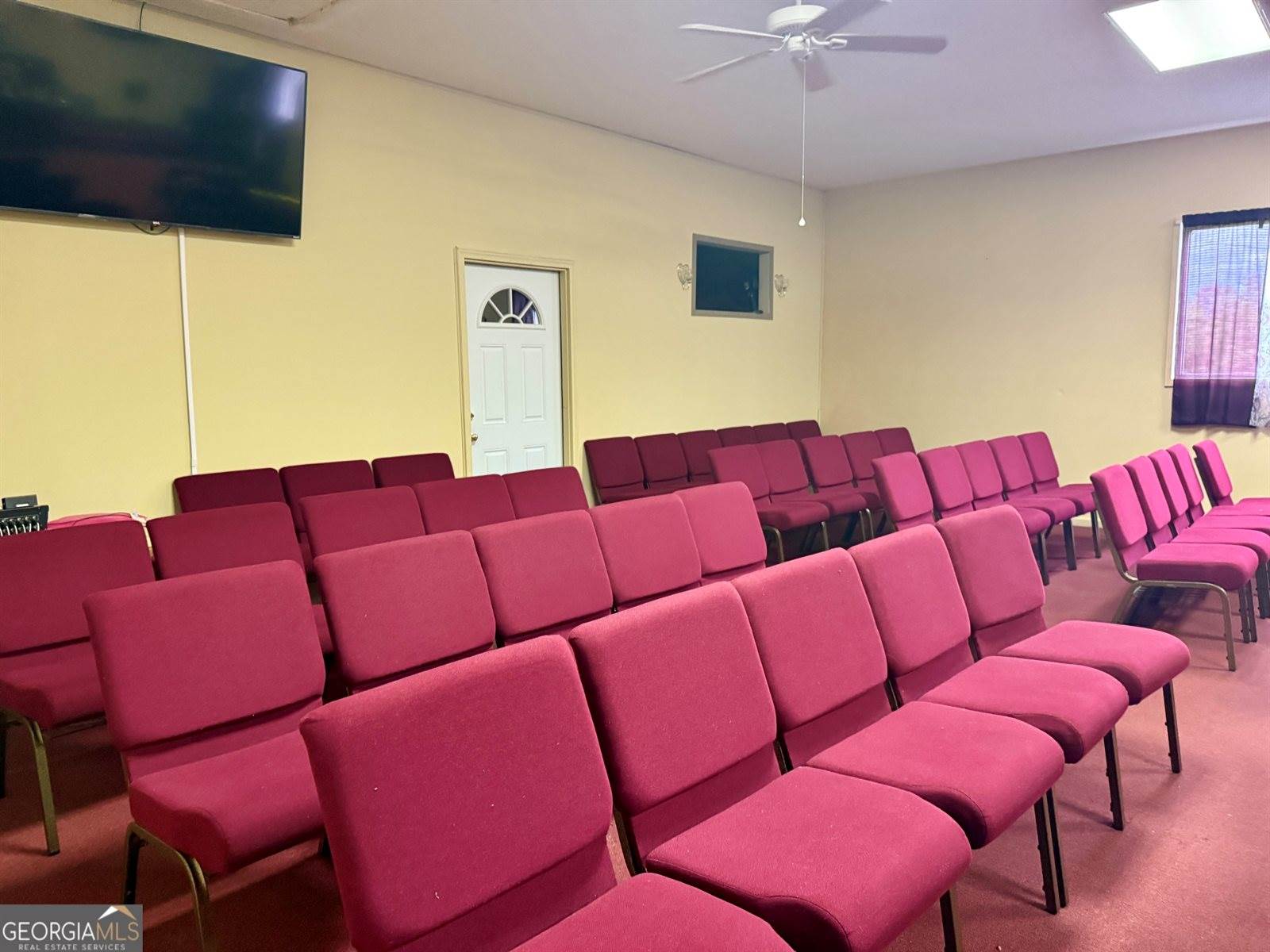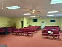 retail, event space, or continued use as a house of worship. Features include a large sanctuary, multiple multipurpose rooms, restrooms, and a paved parking lot with ample space for guests or clients. Prime location with road frontage and easy access to major