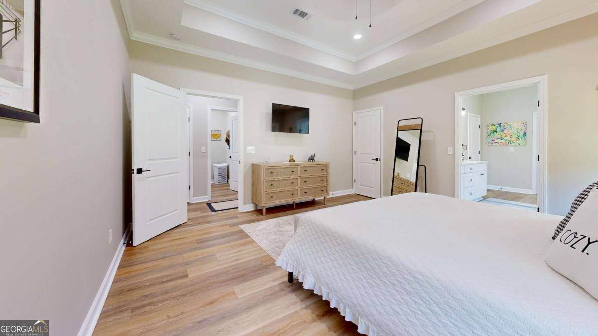 flow into the dining area - perfect for everyday living and entertaining. The primary suite is a true retreat with tray ceilings, recessed lighting, and two walk-in closets. The luxurious en suite bathroom boasts a beautifully tiled stand-up shower, a large