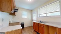 relaxing and entertaining. The bathroom is conveniently located between the two bedrooms. Natural light pours into every room, thanks to the numerous windows that brighten the entire home. Each bedroom is spacious and well-appointed. Outside, the covered front
