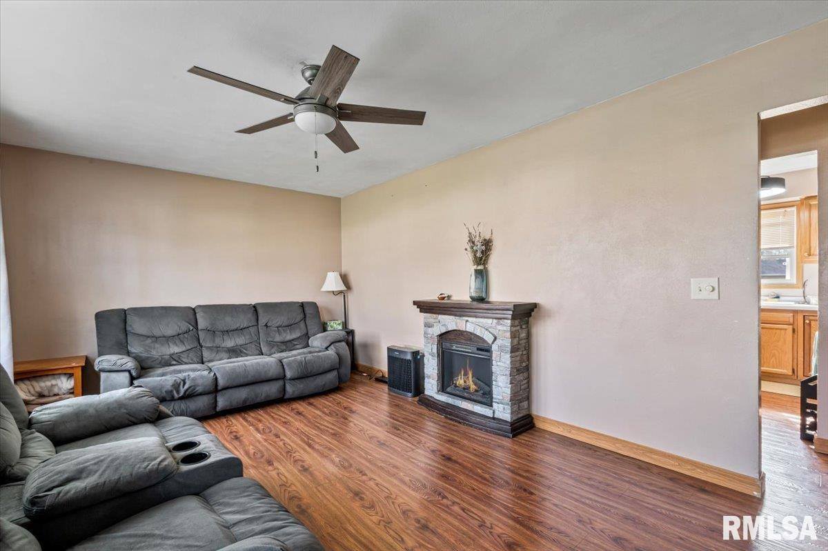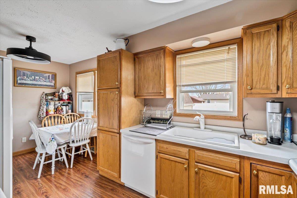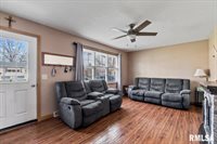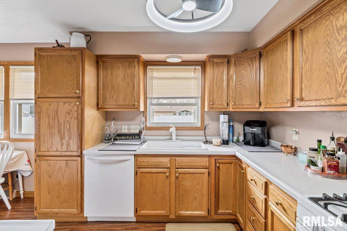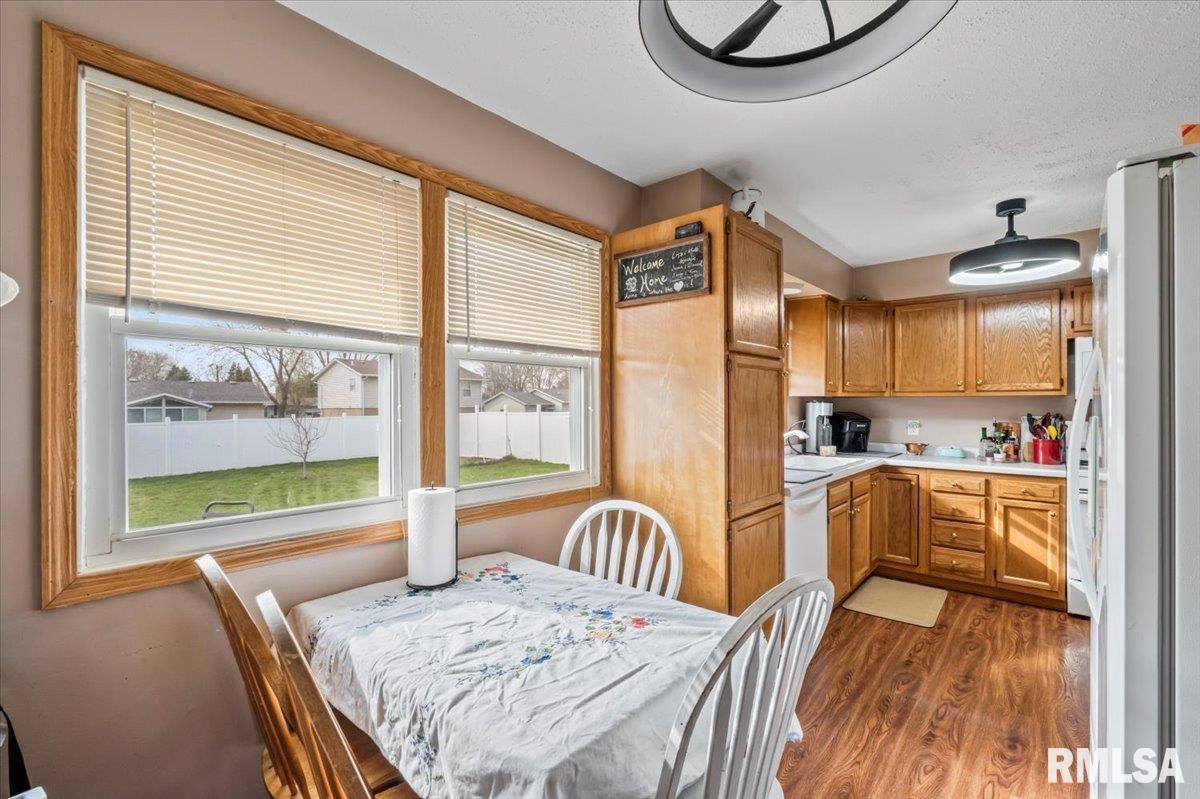 Welcome to this adorable ranch home with finished basement centrally located in Eldridge IA. With three bedrooms on the main floor and two in the basement (one with newer egress window), two full baths and two full living rooms and lots of storage space, this home has so much to offer! Lots of updates including new sump pump(2023), newly added egress window in basement(2023), New farmhouse sink, new garbage disposal, New basement flooring(2023), Newer vinyl privacy fence (2018) Newer lighting fixtures through out home, Added full bath in basement, New washer (2024). 1-car attached garage and large shed in backyard for additional storage.