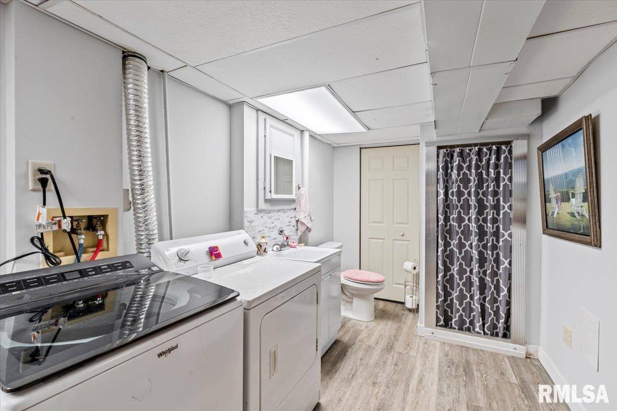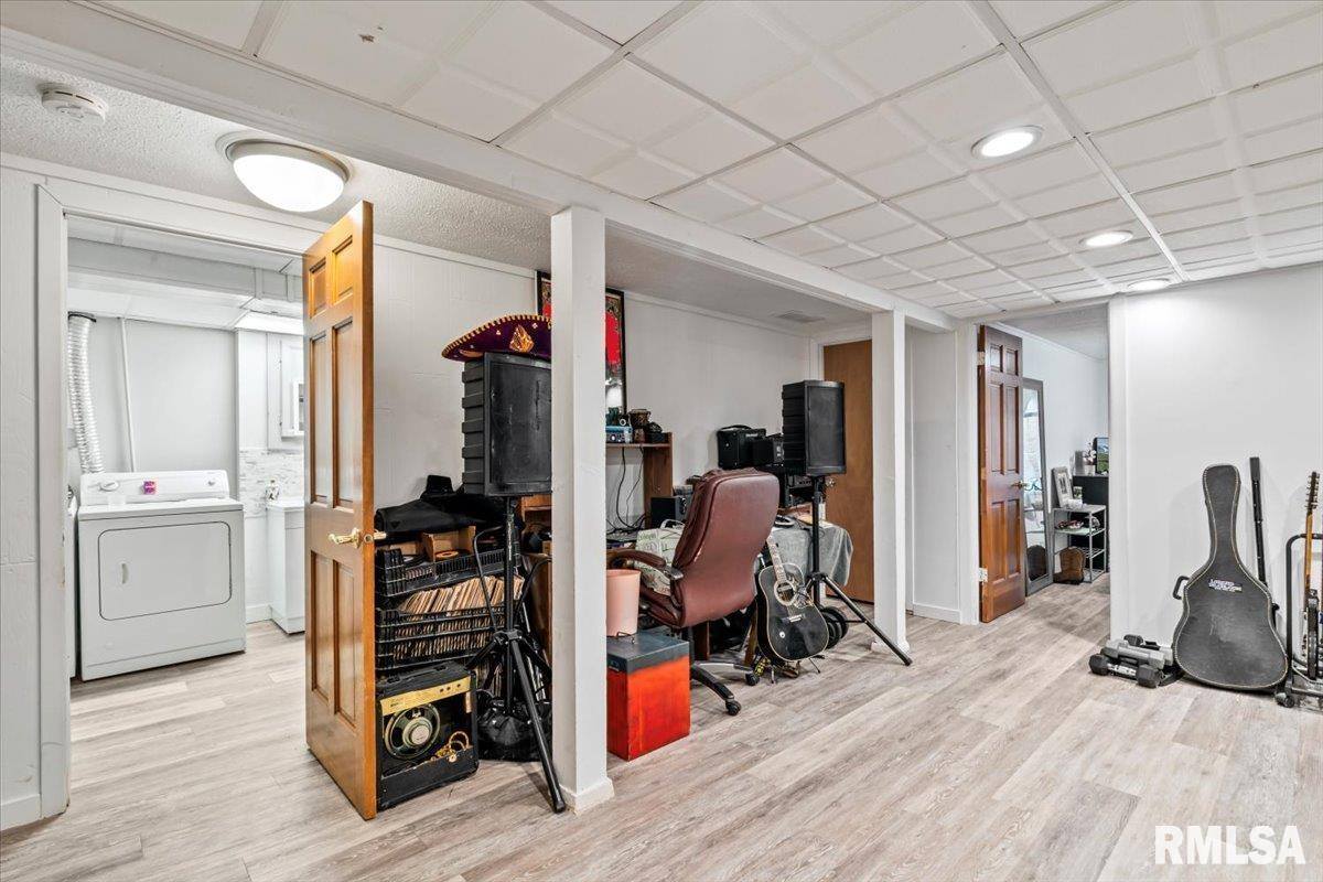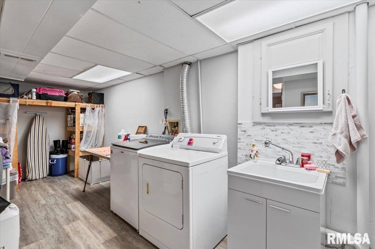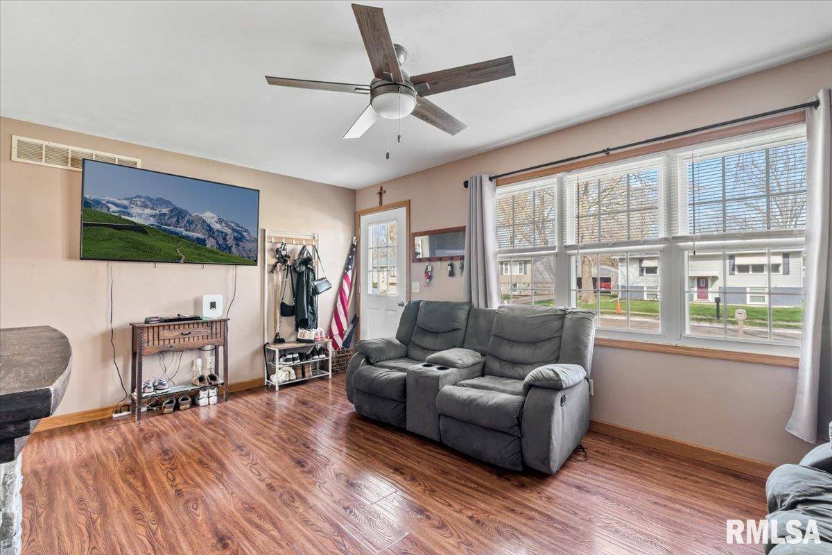 Welcome to this adorable ranch home with finished basement centrally located in Eldridge IA. With three bedrooms on the main floor and two in the basement (one with newer egress window), two full baths and two full living rooms and lots of storage space, this home has so much to offer! Lots of updates including new sump pump(2023), newly added egress window in basement(2023), New farmhouse sink, new garbage disposal, New basement flooring(2023), Newer vinyl privacy fence (2018) Newer lighting fixtures through out home, Added full bath in basement, New washer (2024). 1-car attached garage and large shed in backyard for additional storage.