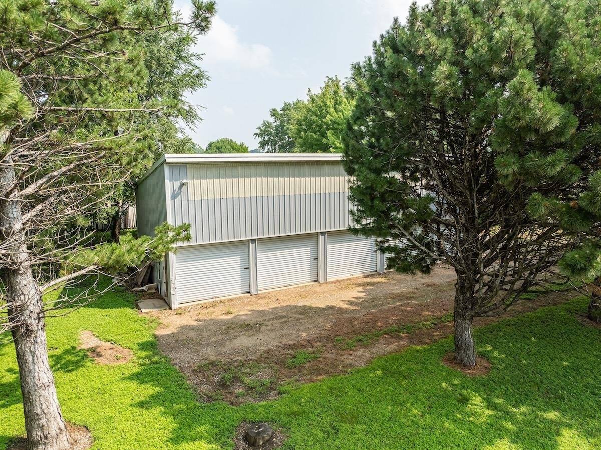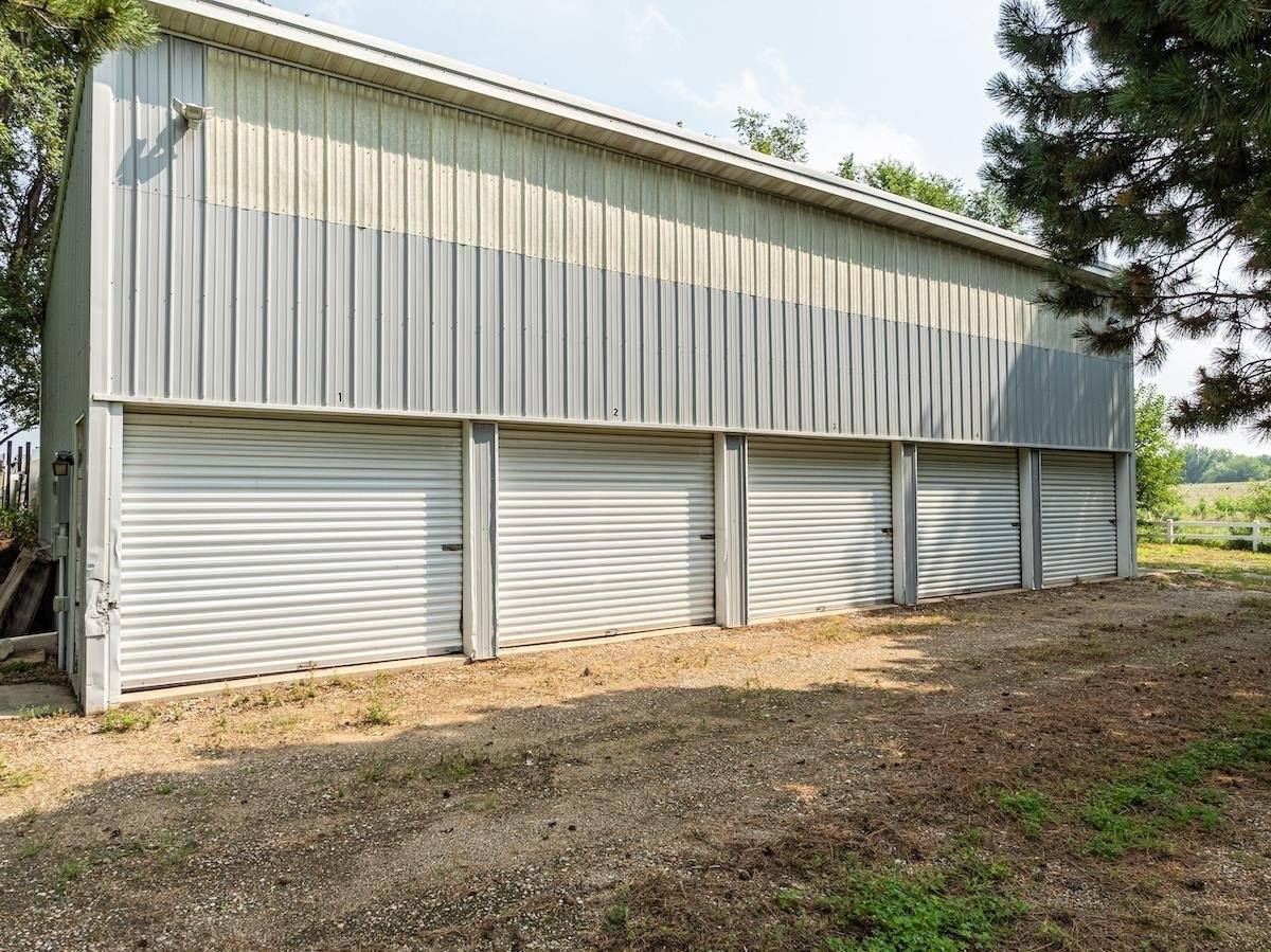 potential for Airbnb or short-term rentals. A 1,200 sq ft storage building is divided into 5 units with room for future expansion, and a separate 1,500 sq ft heated shop with water and sewer is currently rented, providing additional steady income. With prime