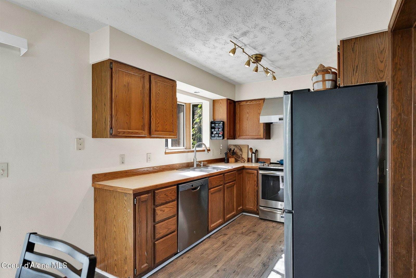 Nestled at the end of a quiet cul-de-sac, this delightful Hayden/North Idaho 3-bedroom, 1-bathroom, 1-car garage, single-level home offers 1004 sq ft of comfortable space on a generous 0.23 acre lot! Built in 1987, this residence features a warm, open layout, conducive to peaceful daily living. *** Upgrades & improvements include: Quickstep ''Studio'' laminate flooring throughout, interior paint, YORK N/G hi-efficiency furnace & central A/C with almost 7-years left under warranty, S/S slide-in electric cookstove, powerful vent-hood, brand new, 52-db dishwasher, French-door refrigerator, matching Samsung front-loading washer & dryer set, and wall mounted TV in the living room! Outside there are huge Ash trees, a massive Arborvitae privacy wall, multiple fruit trees & bushes (Bing Cherry in front & Rainer Cherry out back), Blackberry and Rhubarb, too. Entertain out back on the rear deck, concrete patio, and around the firepit. Close to everything your Hayden Lifestyle has to offer!
