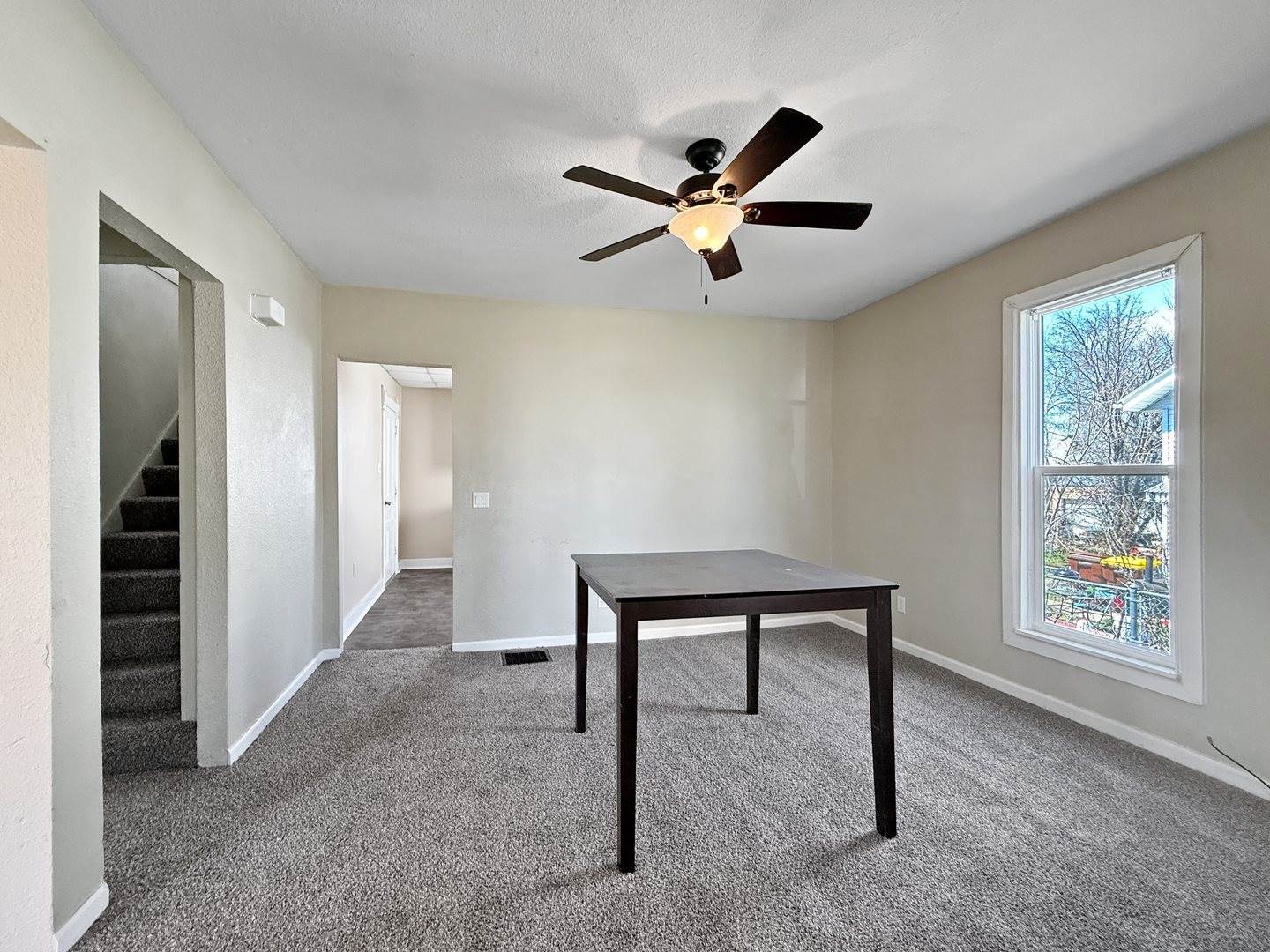 Great Home with 3 Bedrooms and 1.5 Bathrooms with a Fenced Yard + 3 Stall Detached Garage. Features include Brand NEW Furnace, Fresh Paint, Carpet, Fixtures, Circuit Breakers and Landscaping. Seller will work with USDA/FHA/VA. Layout Includes 2 Porches, Galley Kitchen, Living Room, Dining Room and Main Floor with Primary Bedroom and Half Bathroom.
