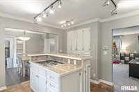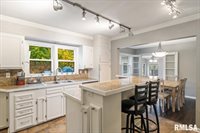 Welcome to this adorable, remodeled 3 bedroom, 2 Bath Ranch home conveniently located in Rock Island. This home had tons of storage and tons of character! On the main floor you will enjoy a very large living room with gas fireplace, cozy carpet large windows for lots of natural light. The spacious kitchen with TONS of cabinet space, in wall oven and microwave, huge island and open to informal dining area will capture any home cooks heart! the den/flex space spanning the dining and garage can be used for work space/play room, mudroom, hobbies, lots of possibilities. 3 bedrooms with natural hardwood and 1 full bath completes the main floor. In the basement, you will can entertain and relax with a built in bar and HUGE rec room area, full bath, laundry and TONS of storage! Outside, you will find additional parking, and a great sized fenced in yard semi-private yard for your enjoyment, entertaining or maybe a garden!