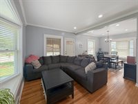 flow seamlessly into the living room, making it ideal for entertaining and everyday living. Enjoy relaxing on the cozy enclosed front porch or spending time in the fenced backyard. A nice concrete driveway leads to the good-sized one-stall detached garage.