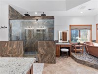 primary suite, with spa-like ensuite featuring heated floors, a custom tile shower, a copper soaking tub, a separate vanity area, and an expansive walk-in closet. Adjacent to the suite, a private den/office offers the perfect escape for work or relaxation.Ascend