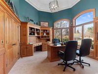 the grand staircase to discover three additional bedrooms, a full bath, and a peaceful library/sitting area with elegant built-ins. Step outside to enjoy a private balcony and outdoor deck, providing a picturesque setting and a tranquil retreat. Designed for