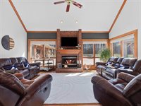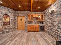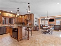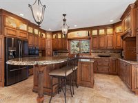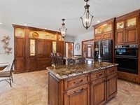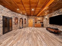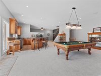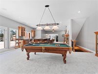 with a snack station and wet bar, or unwind by the brick fireplace in the hearth room. The exceptional recreation area is perfect for billiards and darts and includes a second full kitchen, a full bar, and a full bath. French doors lead to an outdoor oasis,