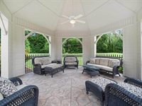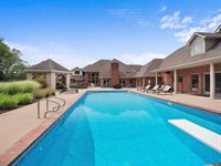 where a heated in-ground pool with an automatic cover, custom lighting, and a diving board creates the ultimate resort-style escape. A cozy fire pit, charming gazebo, outdoor sound system, and ample lounging spaces make this the perfect setting for outdoor