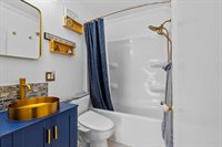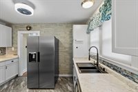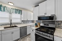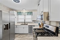 remodeled kitchen is a standout, offering brand-new cabinetry, countertops, and modern appliances alongside a stylish modern floor. Two bedrooms are conveniently located on the main floor, while