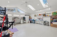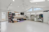 the private second-floor master suite boasts a large walk-in closet and an updated full bath. Outside, you'll find a dreamy backyard retreat—a spacious, heated, and cooled workshop perfect for an artist studio,