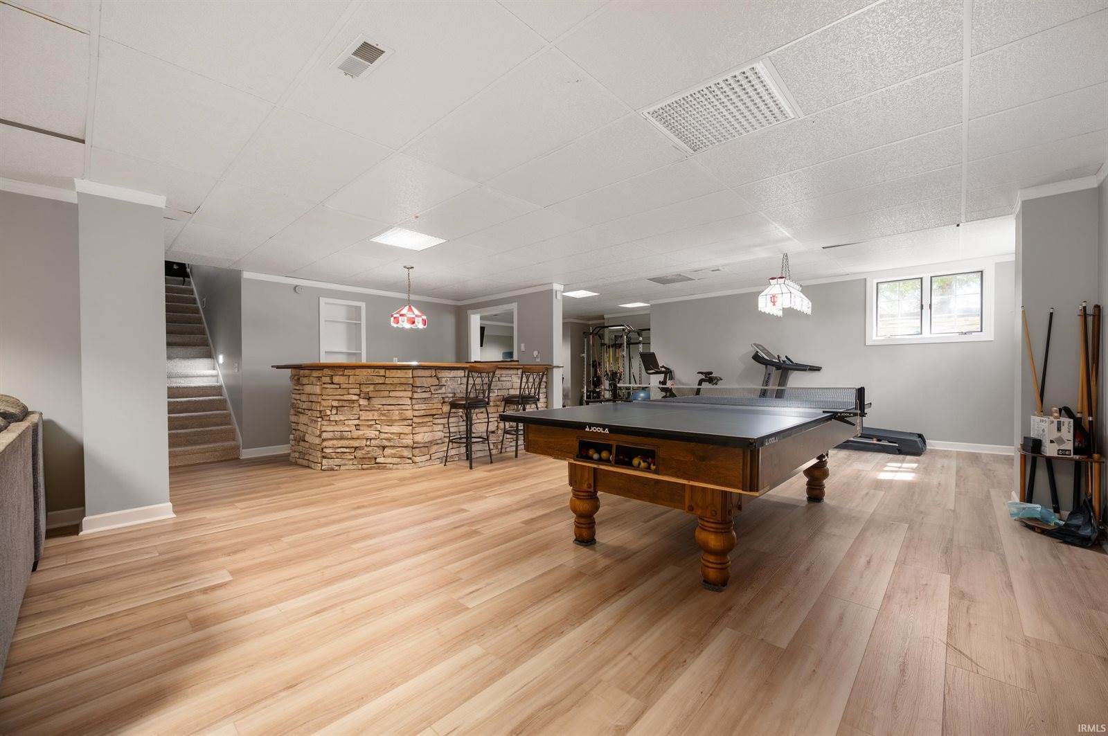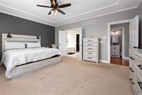 Welcome to this magnificent, custom-built home overlooking the scenic Player's Club at Woodland Trails. Thoughtfully designed with a spacious, open floor plan, this home offers the perfect blend of comfort and elegance for entertaining and everyday living. Step inside to soaring ceilings and an inviting great room with a gas log fireplace and stunning two-story windows that fill the space with natural light. The heart of the home is the oversized kitchen, featuring a center cook island, a generous dining area, and easy access to the screened porch and back deck—ideal for morning coffee or evening relaxation. The main floor also includes a private den with vaulted ceilings, a formal dining room, and a large laundry room with a half bath and extra storage. The spacious first-floor master suite is a true retreat with a walk-in closet, a luxurious whirlpool tub, and direct access to outdoor living spaces. Upstairs, you’ll find additional bedrooms, each with access to a bathroom, plus a versatile bonus room perfect for guests, a playroom, home schooling area or a home office. The walk-in attic offers outstanding storage potential. The daylight basement is finished with a large game room, plush carpeting, painted walls, finished ceilings, and an expansive gym area—ideal for workouts, hobbies, or hanging out with family and friends. Situated on a wooded lot with a large private backyard and mature trees, this home also includes a 3-car garage and is serviced by Yorktown utilities. Claim your place in one of the most sought-after neighborhoods with this truly remarkable home, and get ready to MOVE!