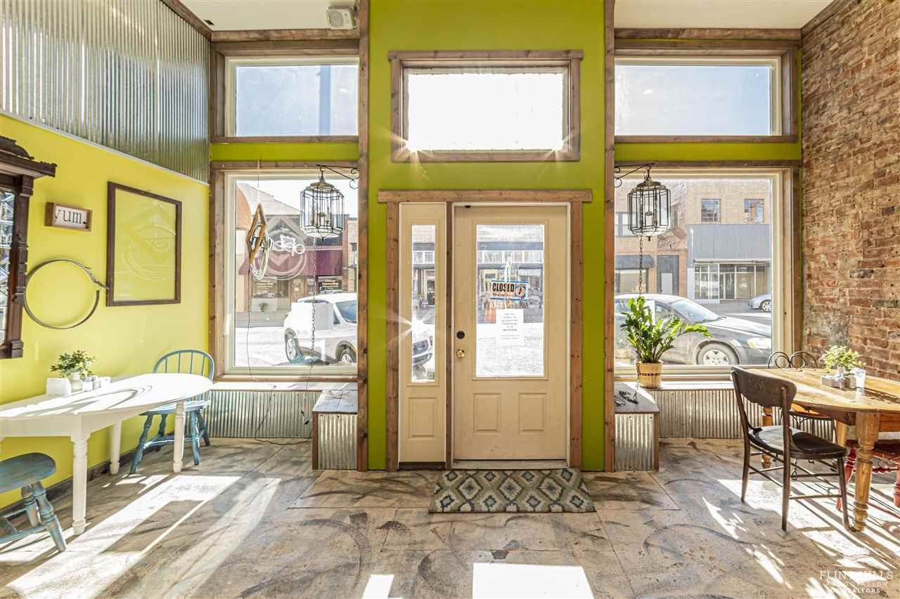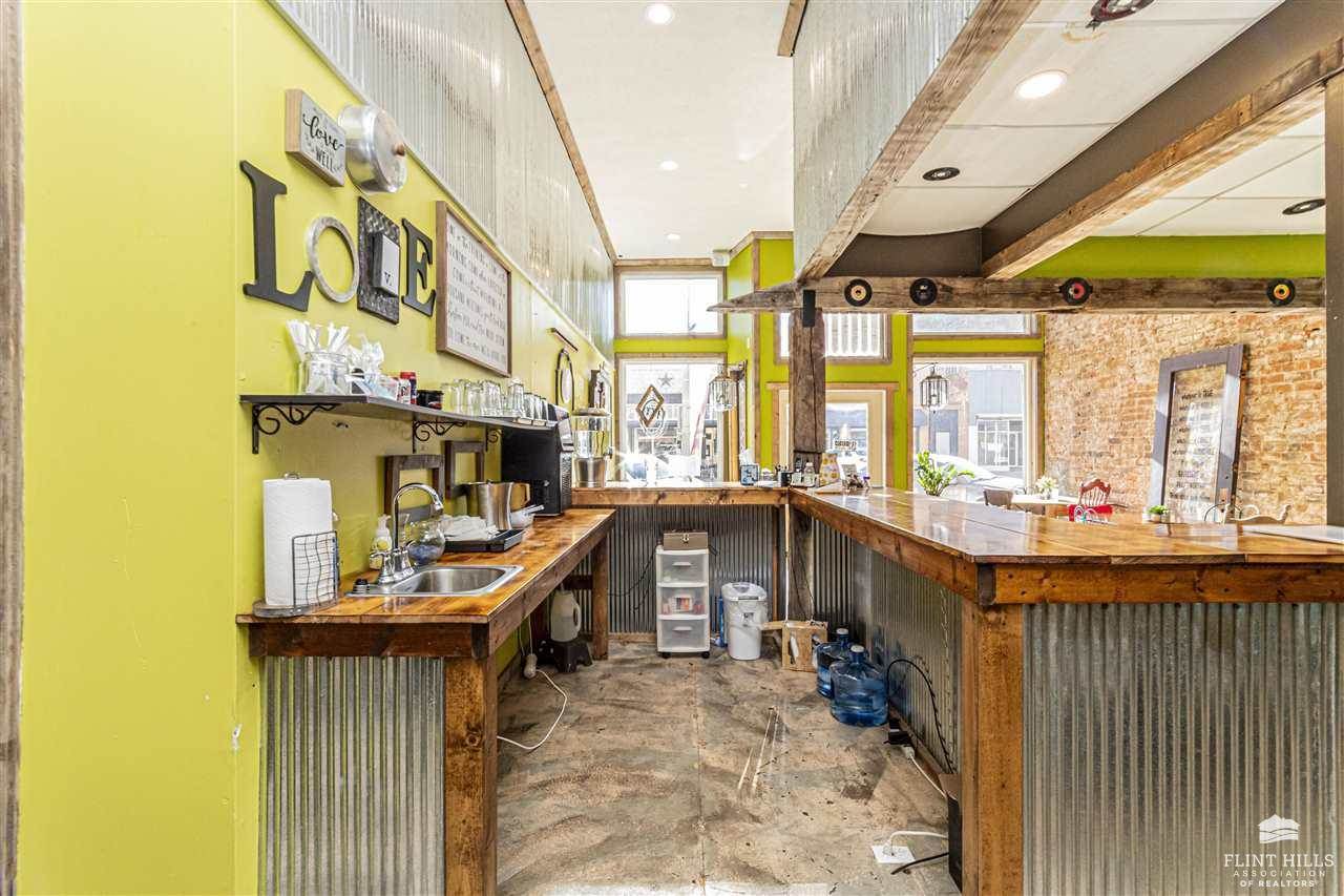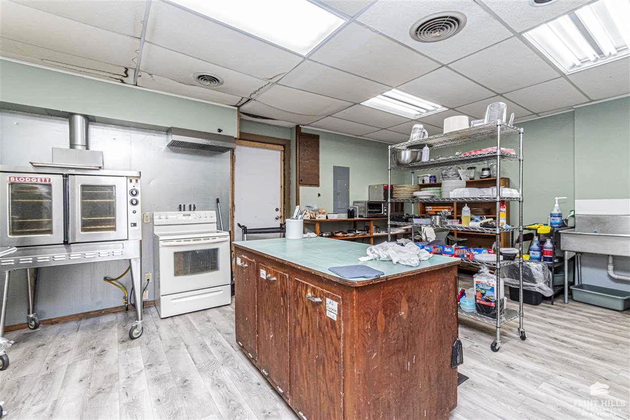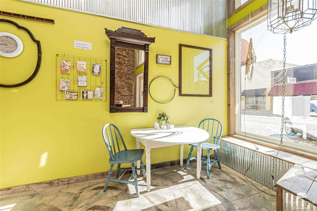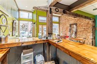 Charming 1900s Historic Downtown Storefront – Available individually or with the adjoining building. This versatile space features a kitchen equipped with a large gas oven, 3-compartment sink, and counter space, a café-style dining area, office/storage room, and a restroom. There is a shared staircase to the second floor, providing additional storage and excellent renovation potential. A full basement offers more storage, with separate utilities and convenient rear alley access. The restored original stone façade enhances the building’s historic appeal. Perfect for retail, food service, or a creative mixed-use concept.