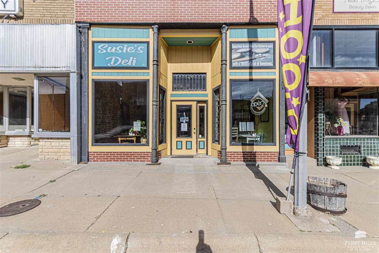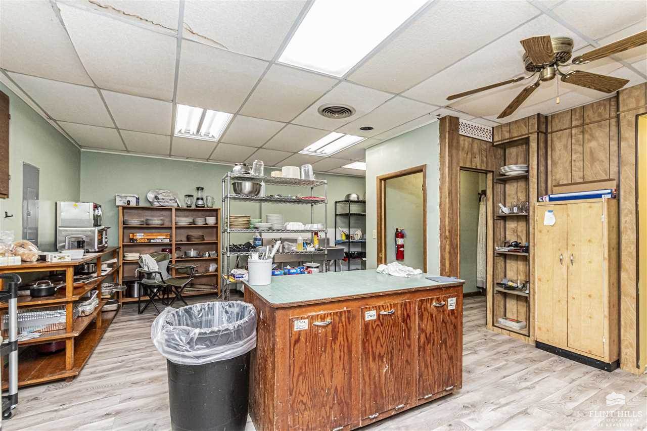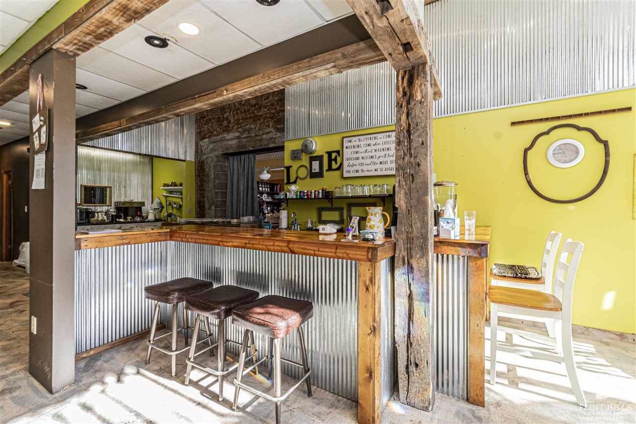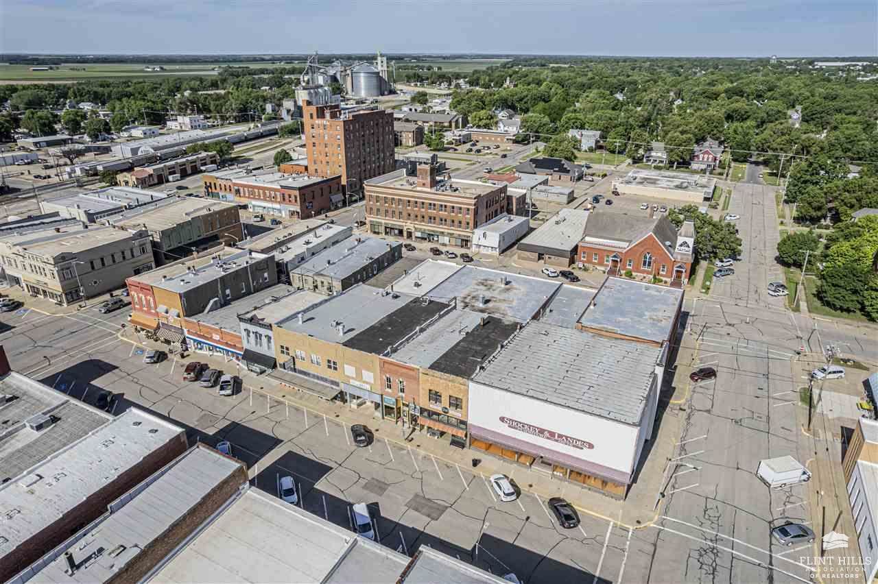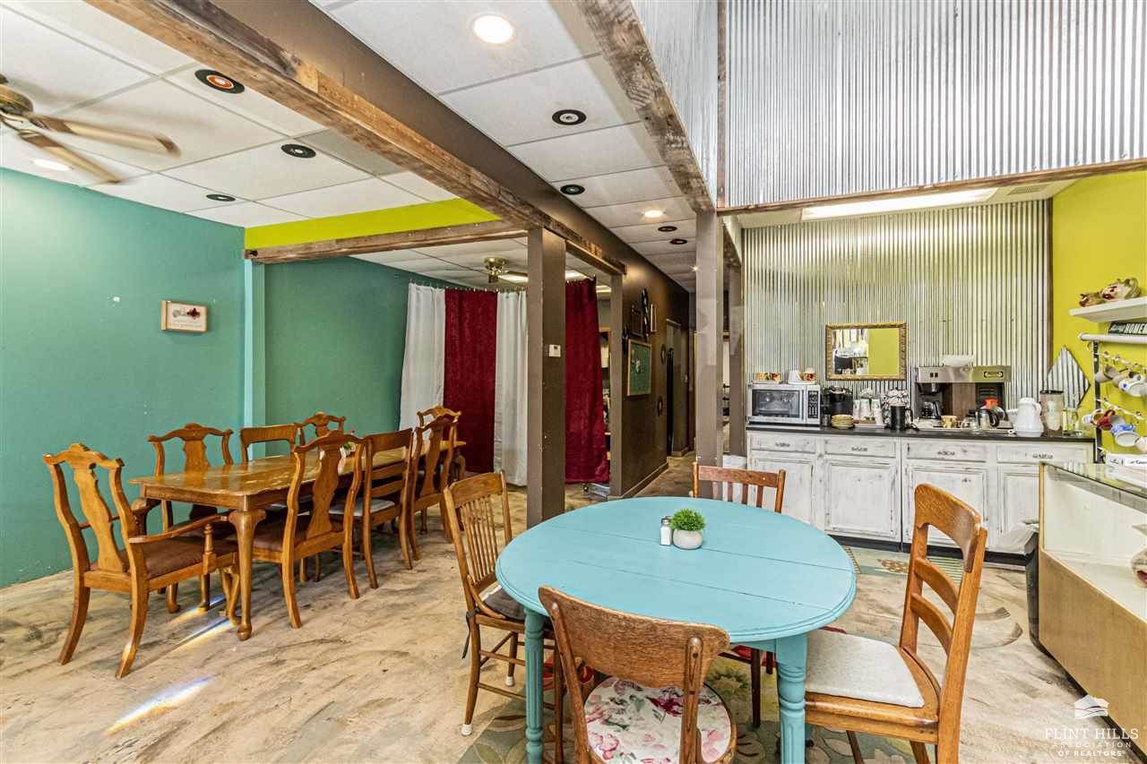 Charming 1900s Historic Downtown Storefront – Available individually or with the adjoining building. This versatile space features a kitchen equipped with a large gas oven, 3-compartment sink, and counter space, a café-style dining area, office/storage room, and a restroom. There is a shared staircase to the second floor, providing additional storage and excellent renovation potential. A full basement offers more storage, with separate utilities and convenient rear alley access. The restored original stone façade enhances the building’s historic appeal. Perfect for retail, food service, or a creative mixed-use concept.
