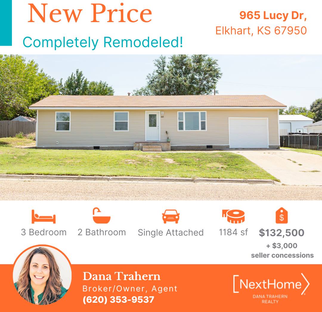 Call Dana Trahern at NextHome Dana Trahern Realty to set up you showing today! 620.353.9537 or 620.356.1045