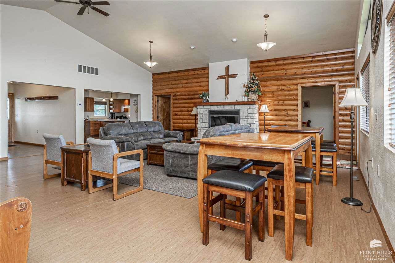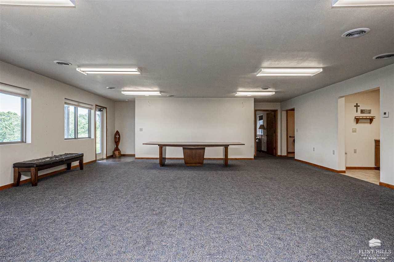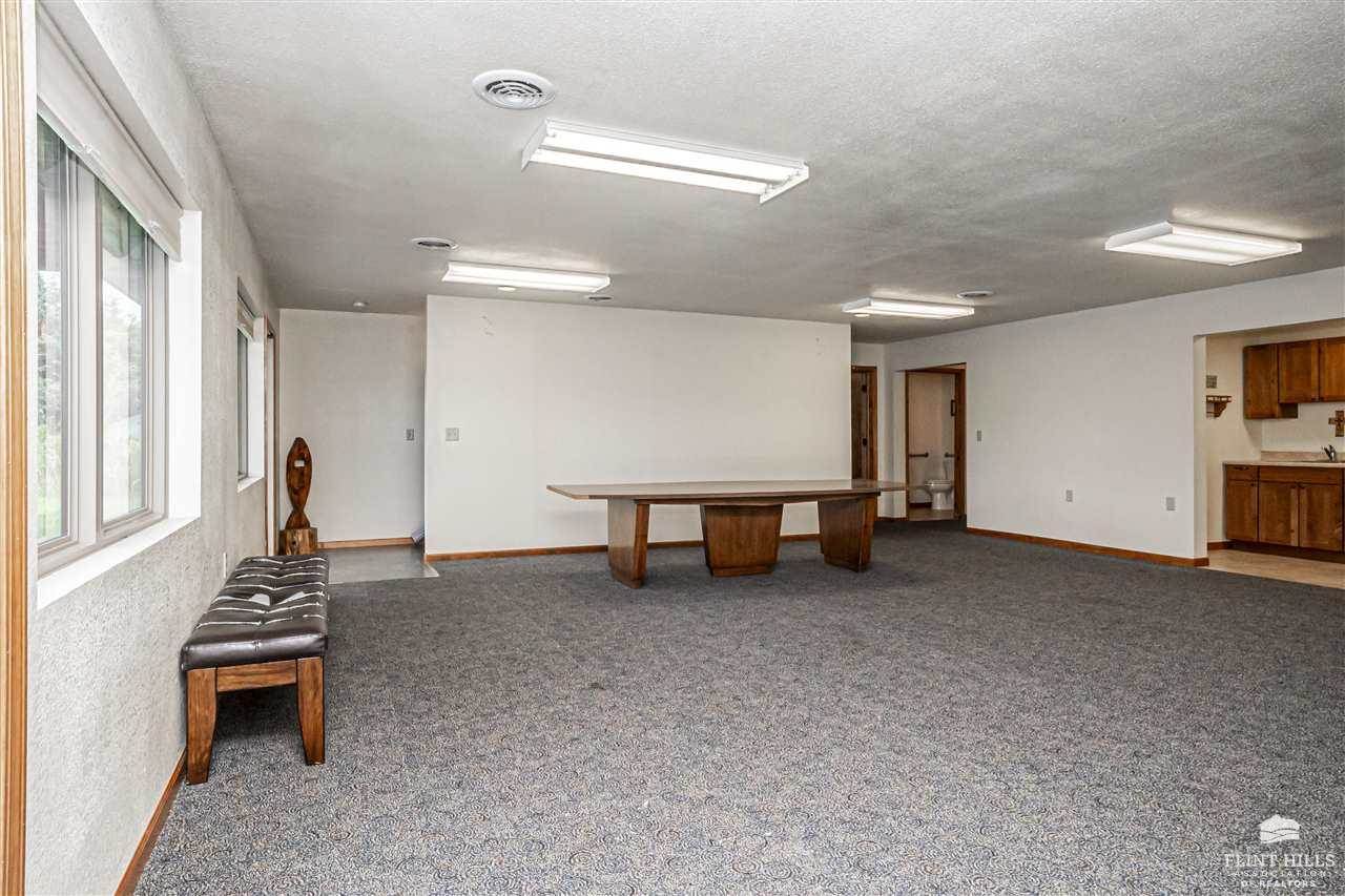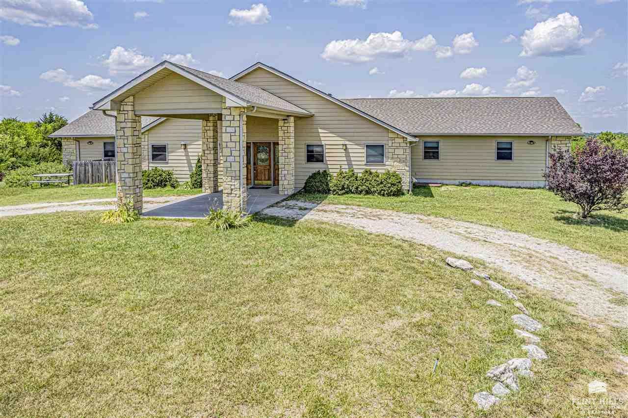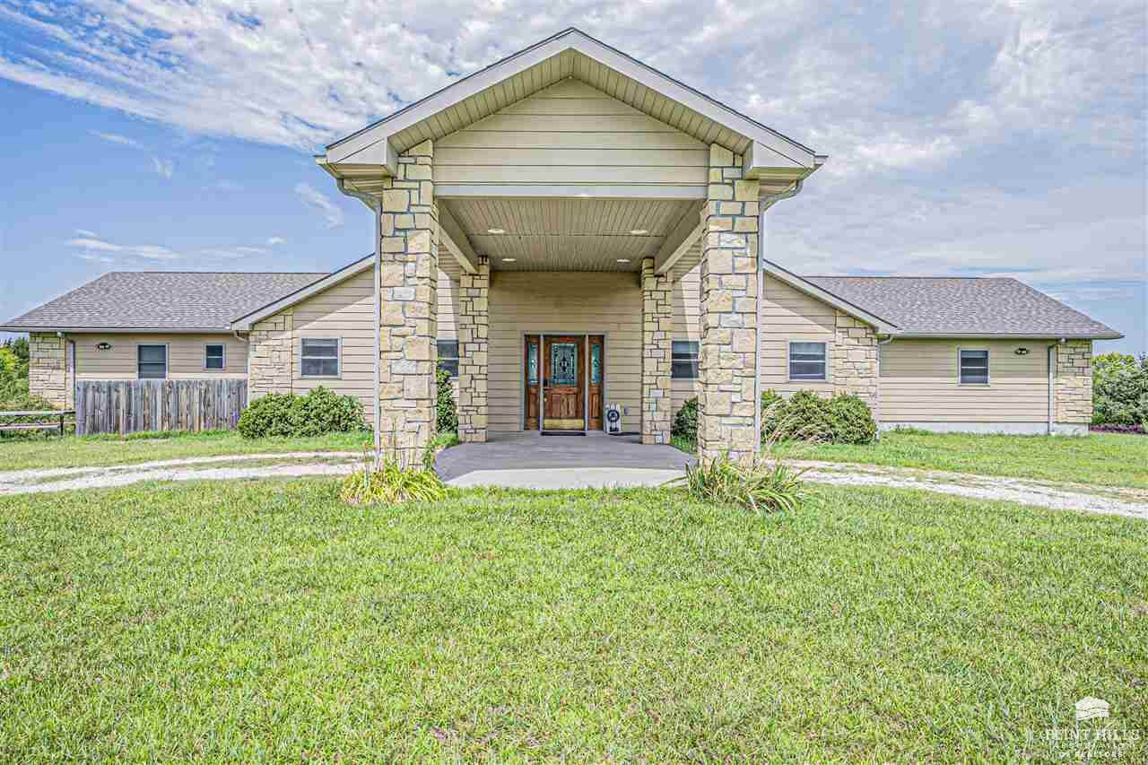 A unique opportunity awaits on approx. 8.7 acres near the shoreline of old Herington Lake, Herington Kansas. This 6,500+ sq ft furnished retreat offers endless potential. Currently a Church Retreat Center, it features a grand canopy entrance, two main-floor