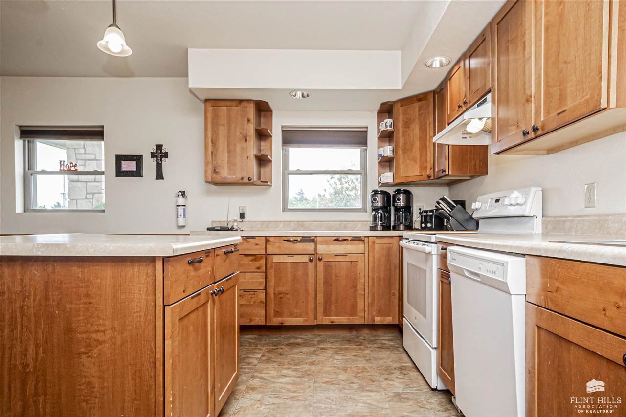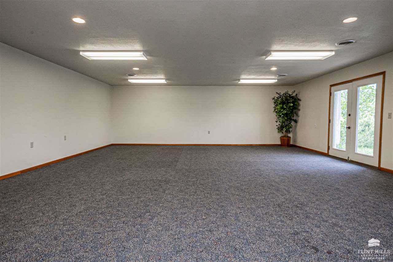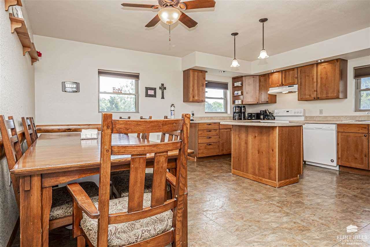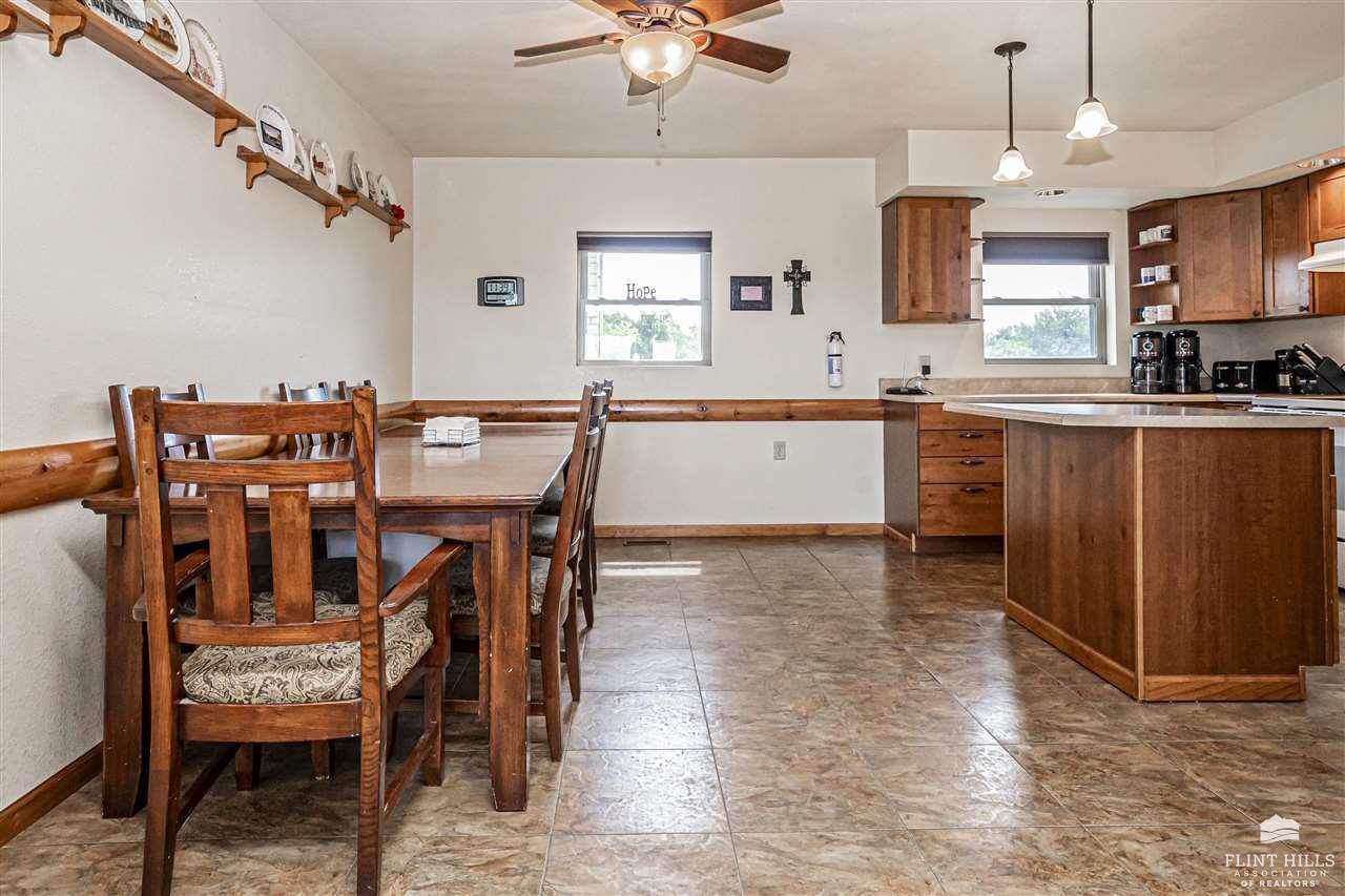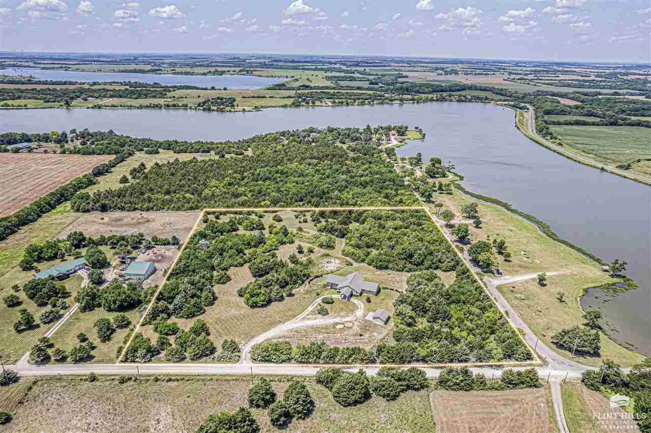 A unique opportunity awaits on approx. 8.7 acres near the shoreline of old Herington Lake, Herington Kansas. This 6,500+ sq ft furnished retreat offers endless potential. Currently a Church Retreat Center, it features a grand canopy entrance, two main-floor