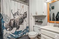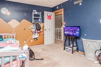 The stylish, updated kitchen offers plenty of space for cooking and gathering, complete with a seated island. The main-level primary suite includes two closets, with laundry, a full bath, and garage access just down the hall. Upstairs, you’ll find three bedrooms