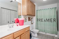 bathroom and plenty of closet. Three additional bedrooms provide flexibility for family, guests, or even a home office. With three full bathrooms, there’s never a wait during busy mornings! Step outside to enjoy your privacy-fenced backyard — ideal for kids,