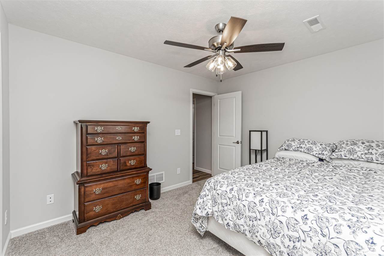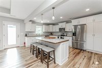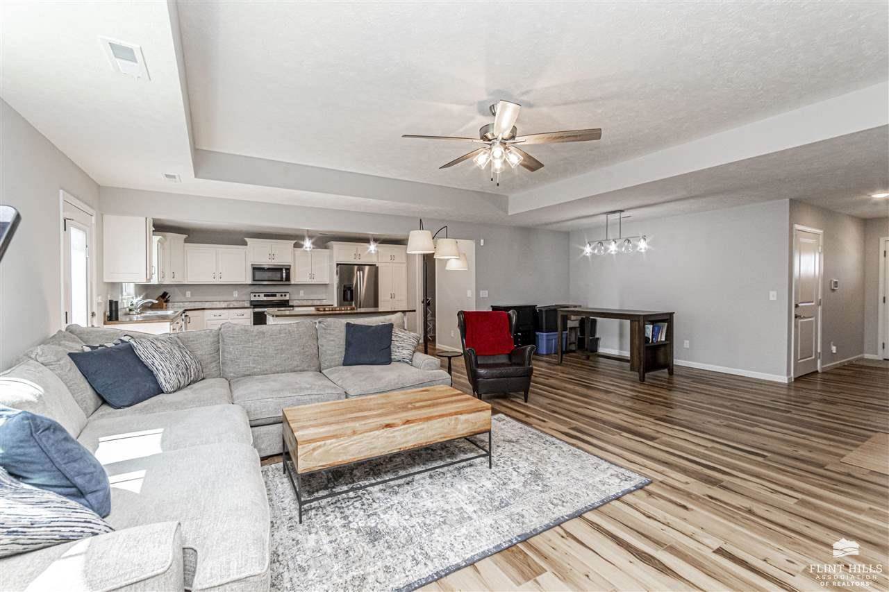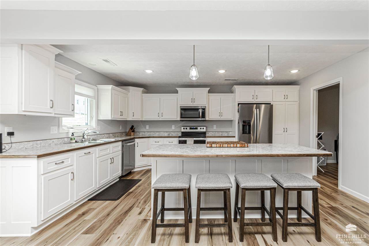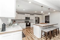 Beautiful Quality Home with Builder Upgrades – A Must See! Step into this thoughtfully crafted home featuring 3 spacious bedrooms and 2 well-appointed bathrooms. From the moment you walk in, you'll appreciate the open-concept layout that blends comfort and functionality, perfect for both everyday living and entertaining. The living room boasts elegant trey ceilings and wood-look vinyl plank flooring that flows seamlessly through the main living areas, while plush carpet keeps the bedrooms cozy and inviting. You'll love the oversized kitchen, complete with a large bar/island ideal for gathering with family or friends. Custom-built Woodbutcher cabinets in both the kitchen and bathrooms – a true touch of craftsmanship and quality. Bathrooms also feature sleek onyx countertops, offering both beauty and durability. Each bedroom offers generous space and ample closet storage, ensuring room for everyone and everything. Water Softener, and don't miss the extra-large two-car, two-door.