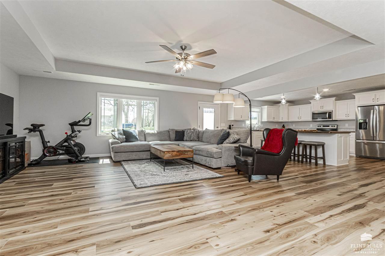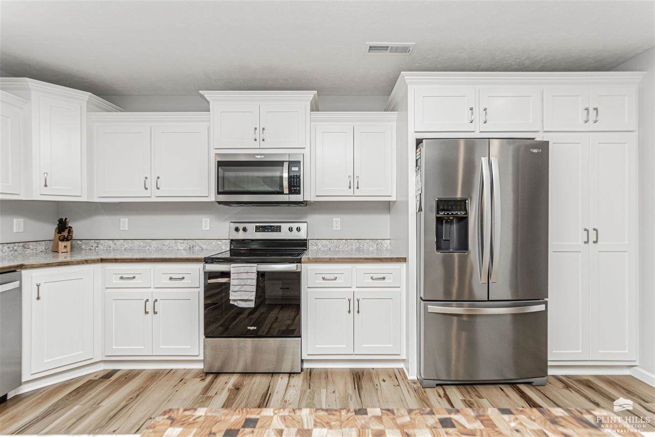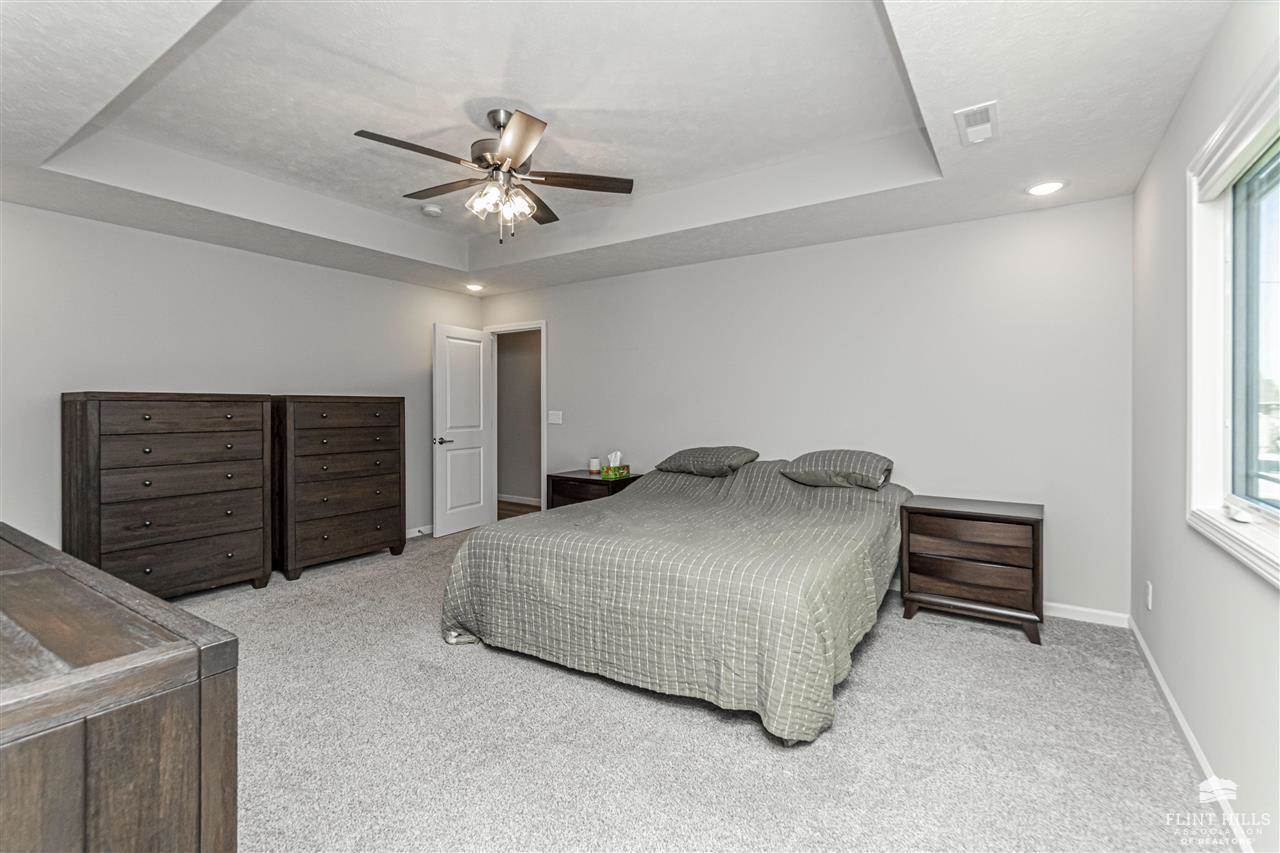 Beautiful Quality Home with Builder Upgrades – A Must See! Step into this thoughtfully crafted home featuring 3 spacious bedrooms and 2 well-appointed bathrooms. From the moment you walk in, you'll appreciate the open-concept layout that blends comfort and functionality, perfect for both everyday living and entertaining. The living room boasts elegant trey ceilings and wood-look vinyl plank flooring that flows seamlessly through the main living areas, while plush carpet keeps the bedrooms cozy and inviting. You'll love the oversized kitchen, complete with a large bar/island ideal for gathering with family or friends. Custom-built Woodbutcher cabinets in both the kitchen and bathrooms – a true touch of craftsmanship and quality. Bathrooms also feature sleek onyx countertops, offering both beauty and durability. Each bedroom offers generous space and ample closet storage, ensuring room for everyone and everything. Water Softener, and don't miss the extra-large two-car, two-door.