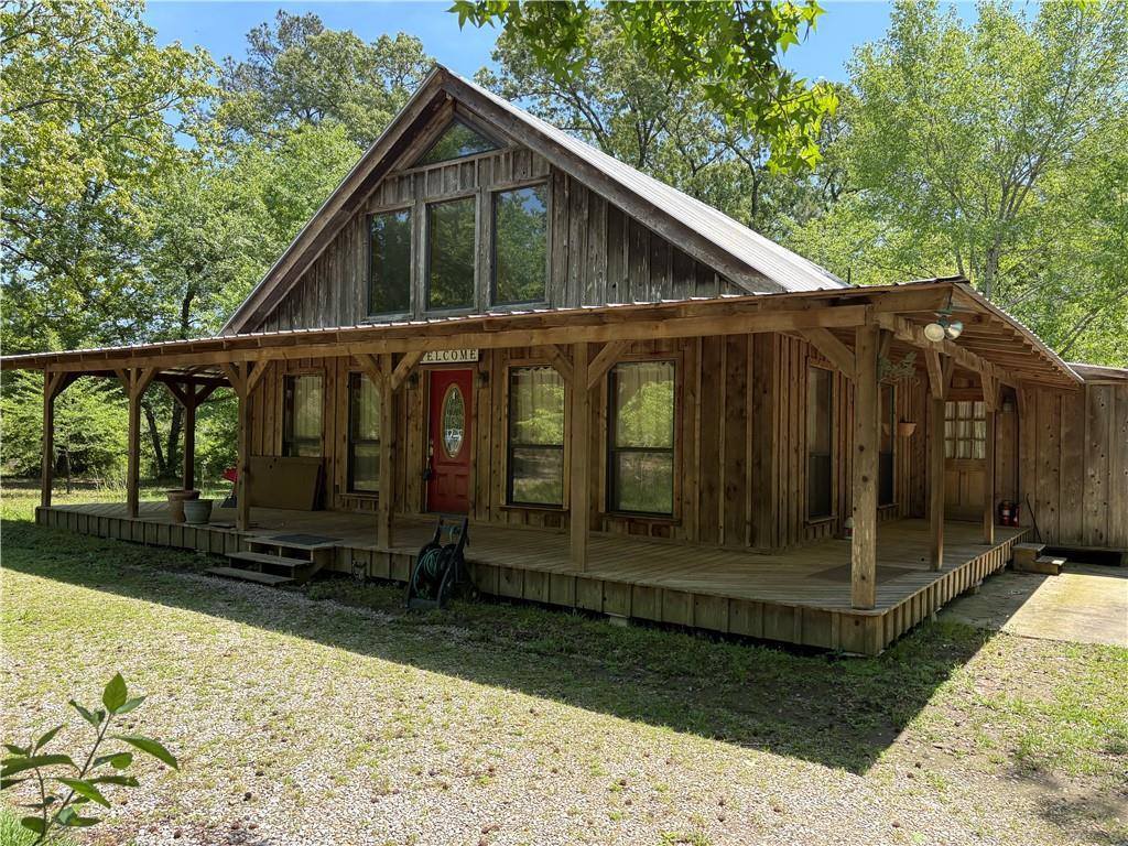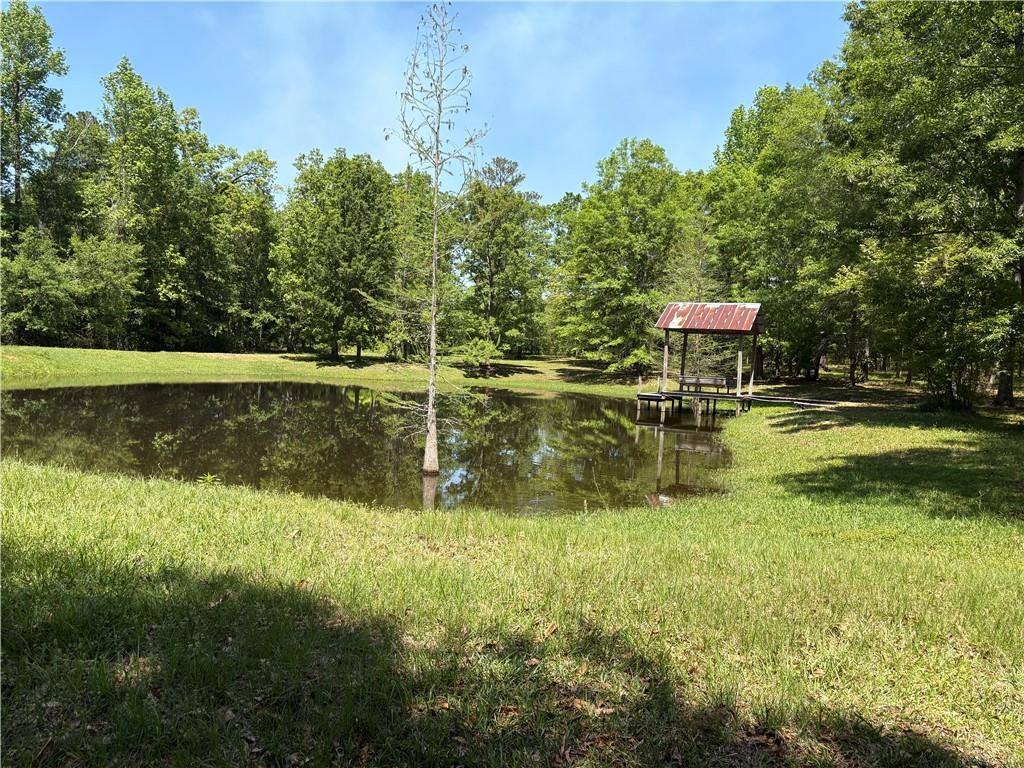 Country living at its best! Sit on the front porch and view the pond just 50 yards in front of the house. Walk down to the covered seating area and catch a few fish while you are there. The house was constructed from cedar with a wrap around porch 3/4 around the house. Enter the home to find Pine wood flooring in the living spaces and to appreciate its beauty. Additionally there are 8 acres for you to roam, hunt/fish, and enjoy the peace and quite of country living.