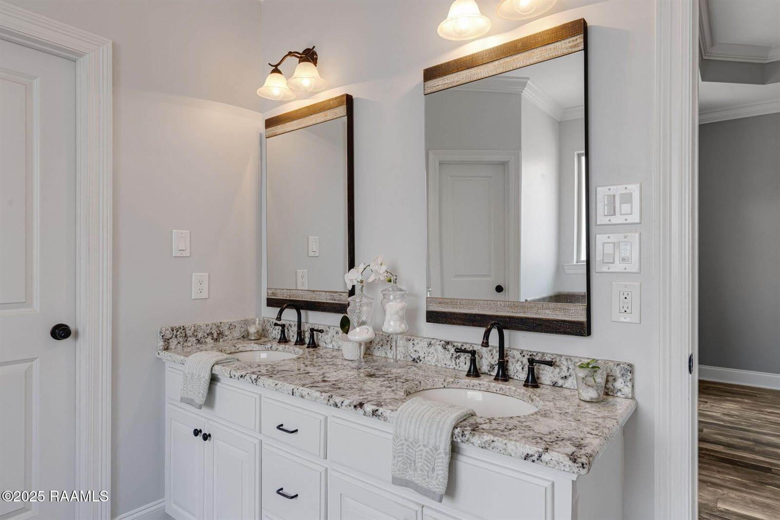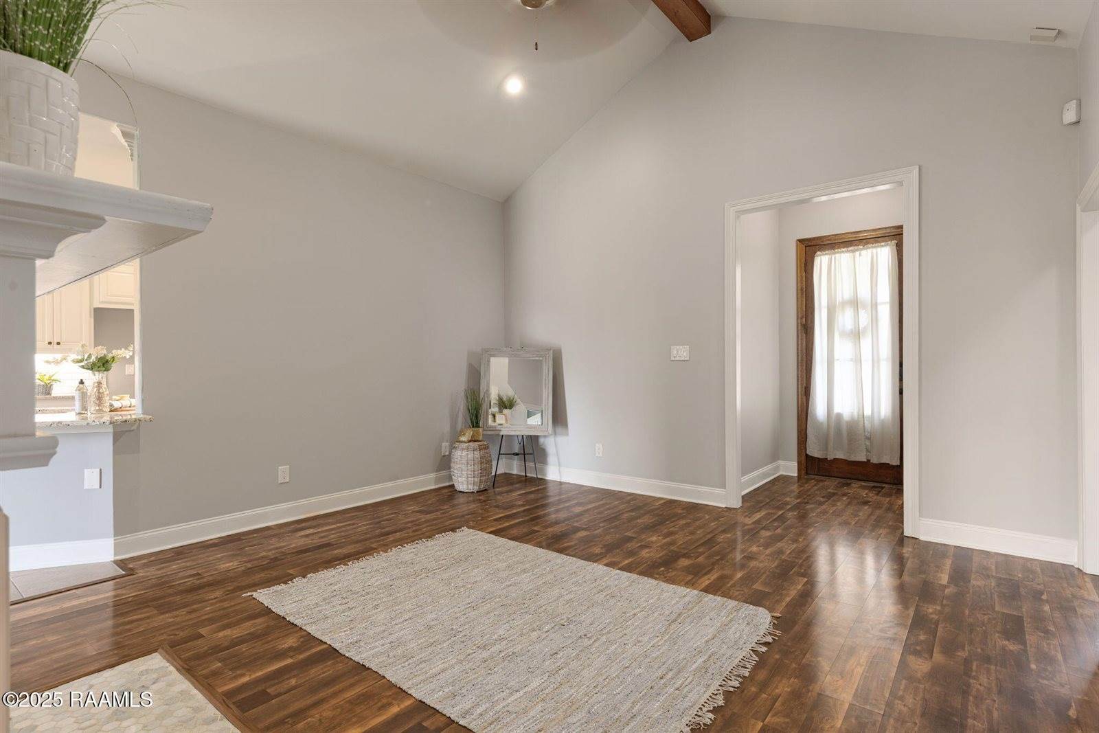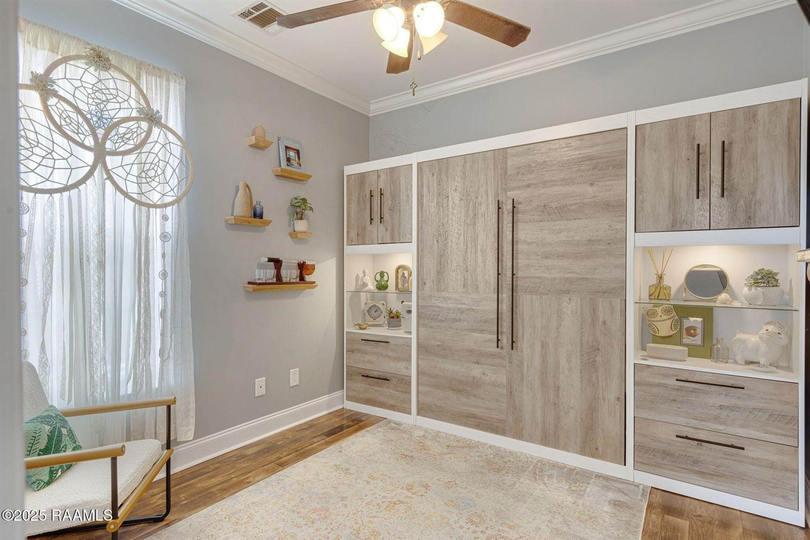 Inside, you'll find custom cypress cabinets that bring warmth and character to the kitchen, perfectly complemented by White Galaxy granite countertops with bullnose edging. Fresh paint throughout gives the interior a bright, clean feel, while updated fixtures