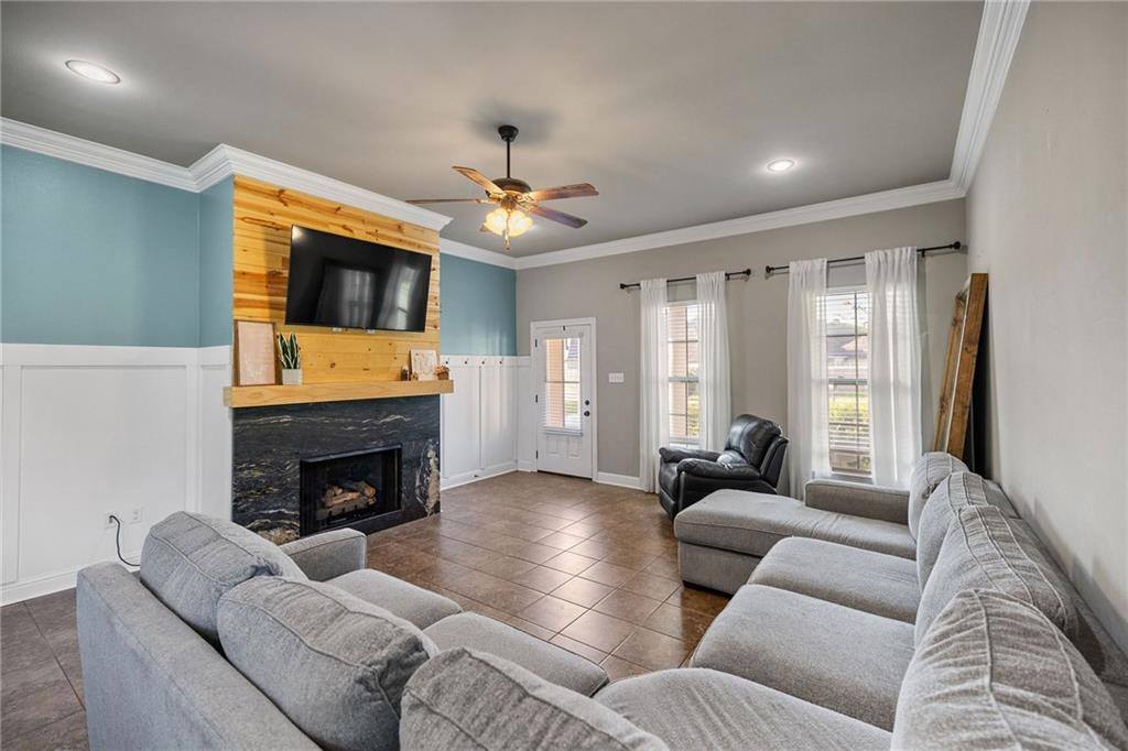 or simply enjoy the space for outdoor activities and entertaining. Step inside to relax and discover the open-concept layout with granite countertops, a charming renovated gas fireplace, crown molding, and chair rail accents that add warmth and character!