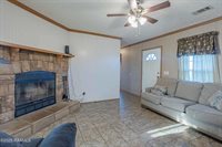 carport, patio, and shed for added convenience. Inside, enjoy easy-to-maintain vinyl tile flooring with no carpet, a wood-burning fireplace, and a spacious kitchen with recessed can lights, a raised bar (fits 4-5 barstools), and abundant cabinet space. The