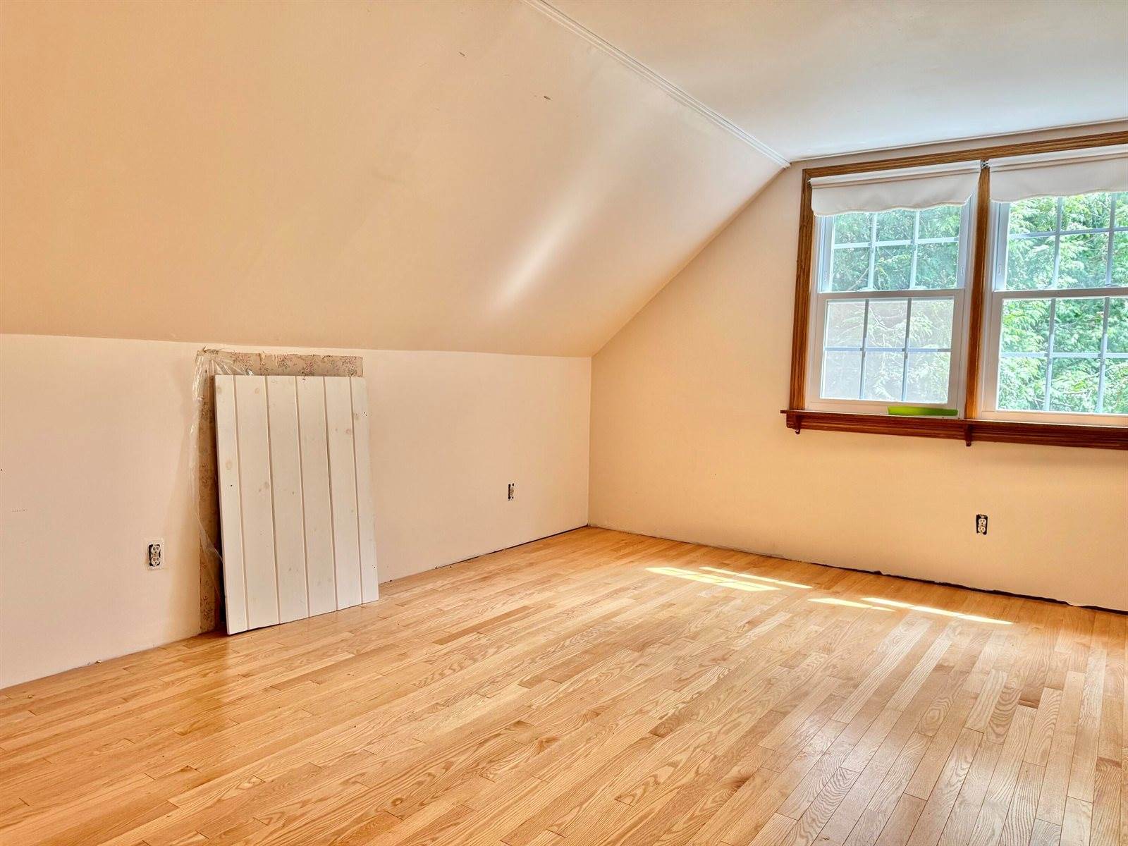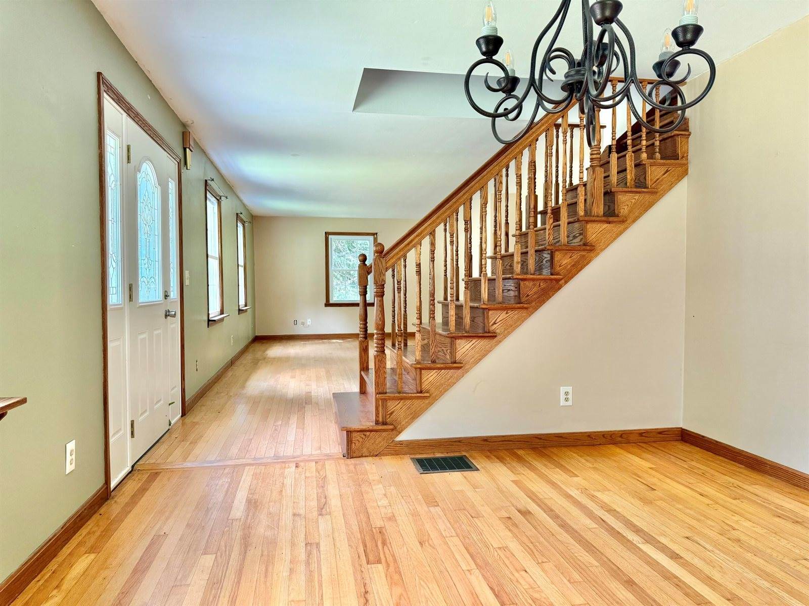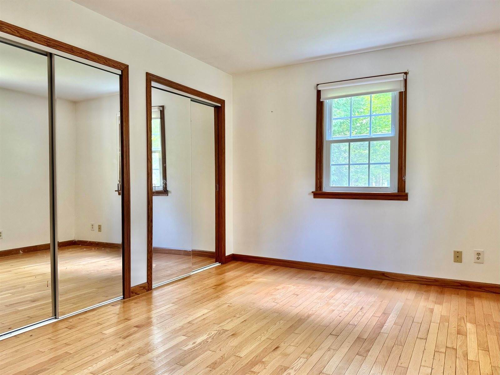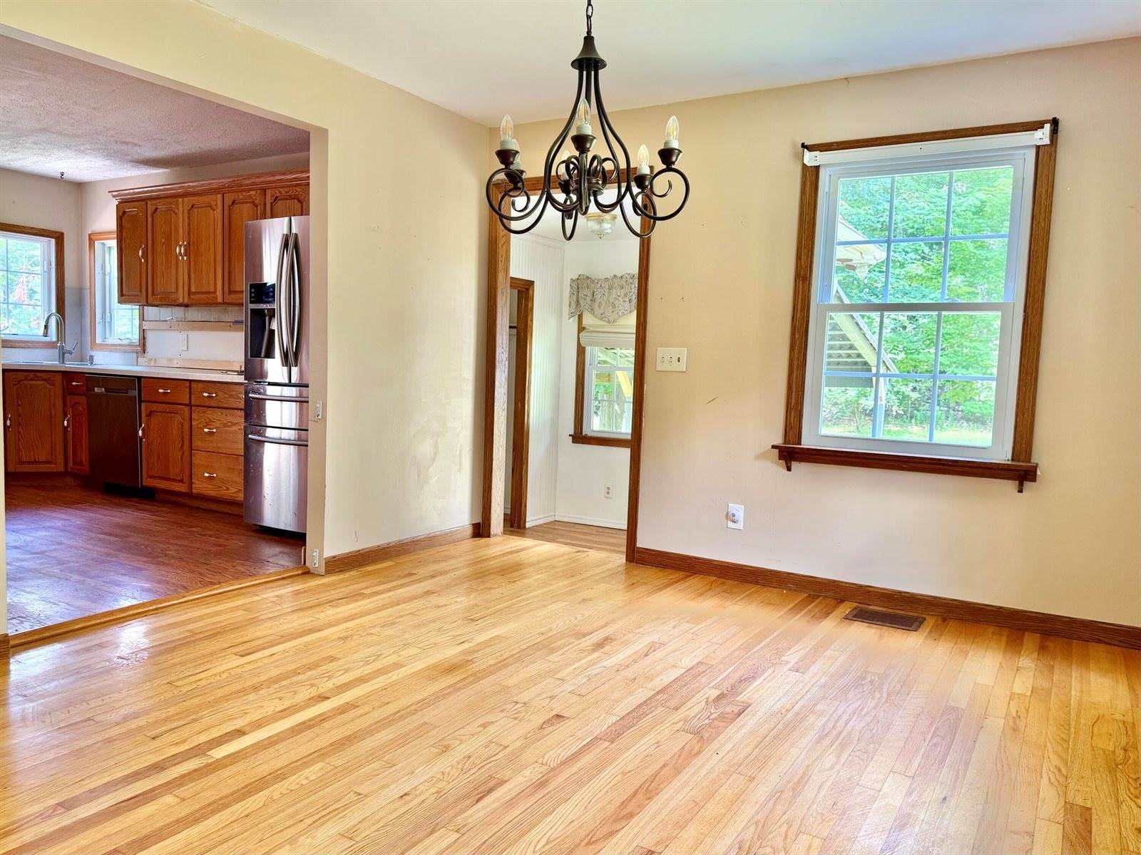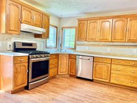 or to build a garage. Step out from the kitchen onto the back deck and take in the serene views of your backyard. Inside, you'll find hardwood floors, a spacious open kitchen with updated appliances, and a convenient mudroom entry. The primary bedroom and