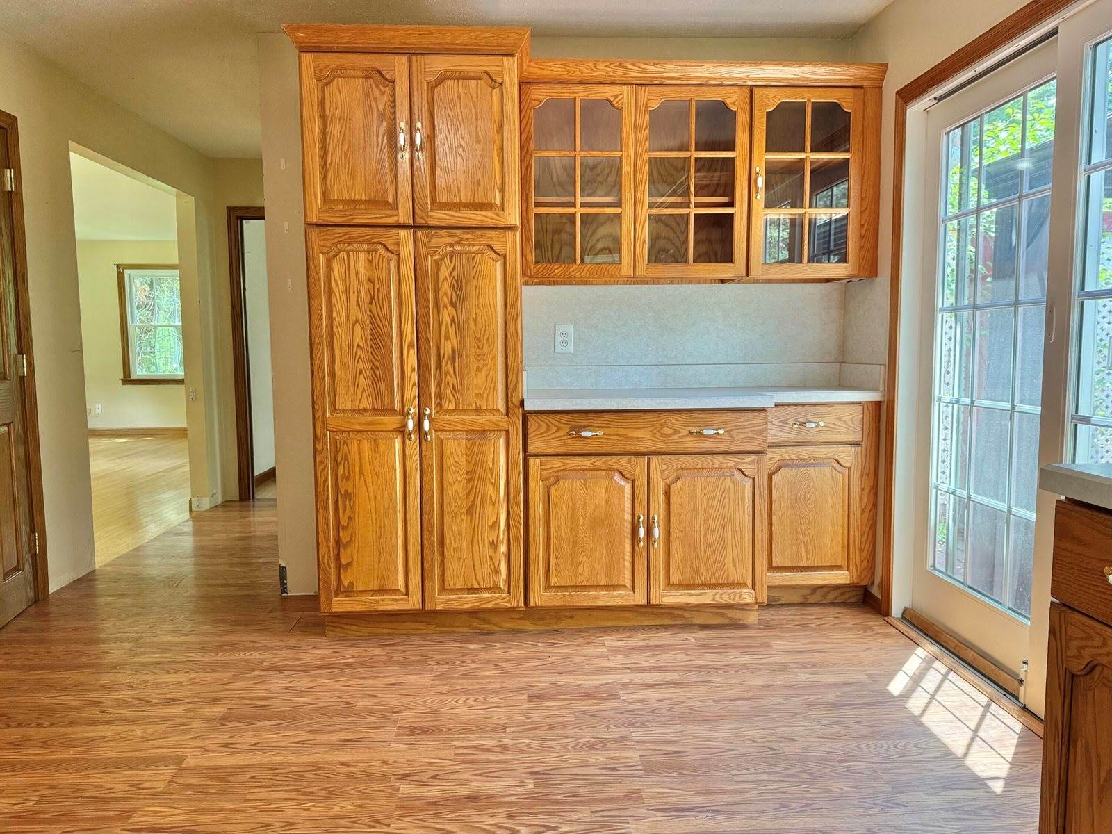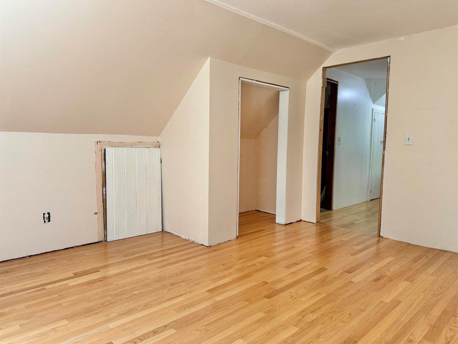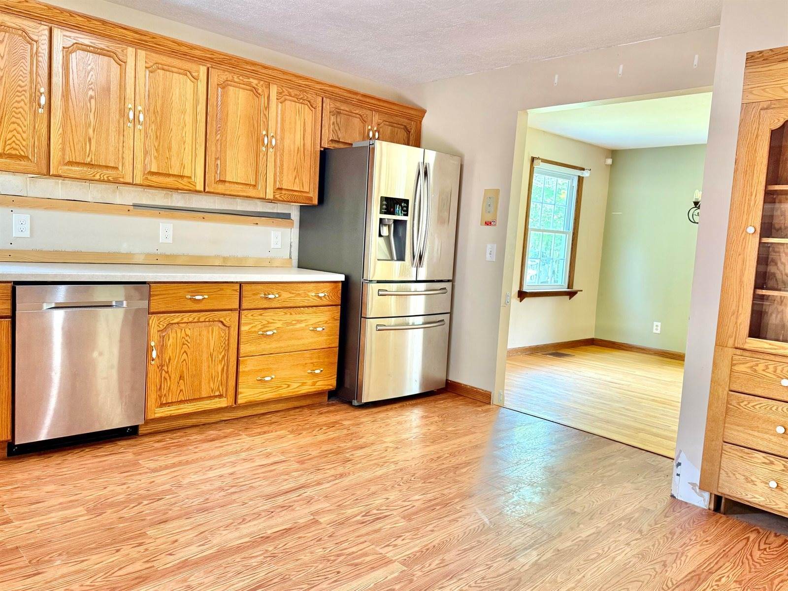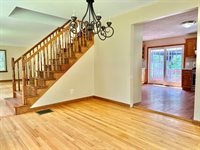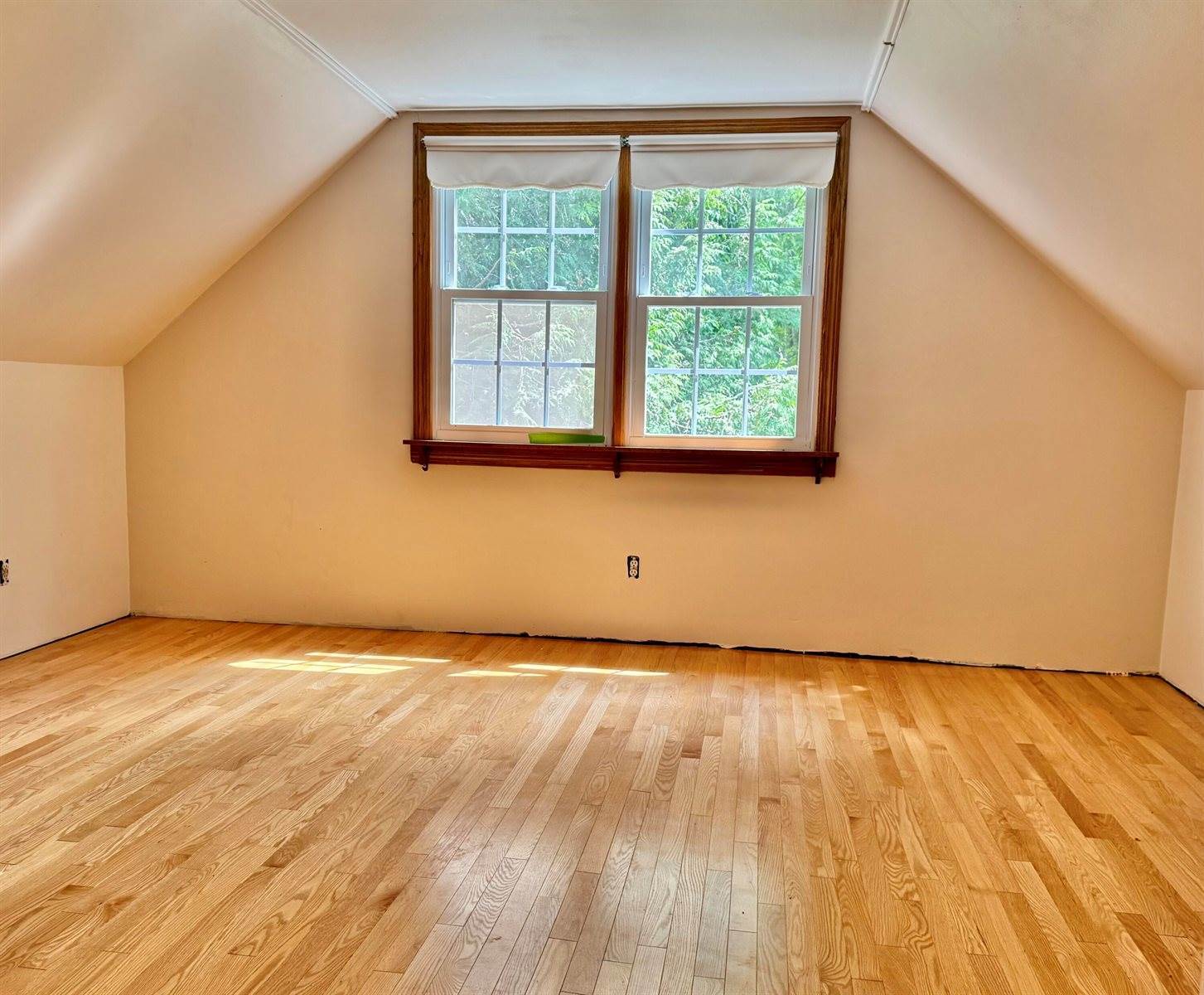 or to build a garage. Step out from the kitchen onto the back deck and take in the serene views of your backyard. Inside, you'll find hardwood floors, a spacious open kitchen with updated appliances, and a convenient mudroom entry. The primary bedroom and