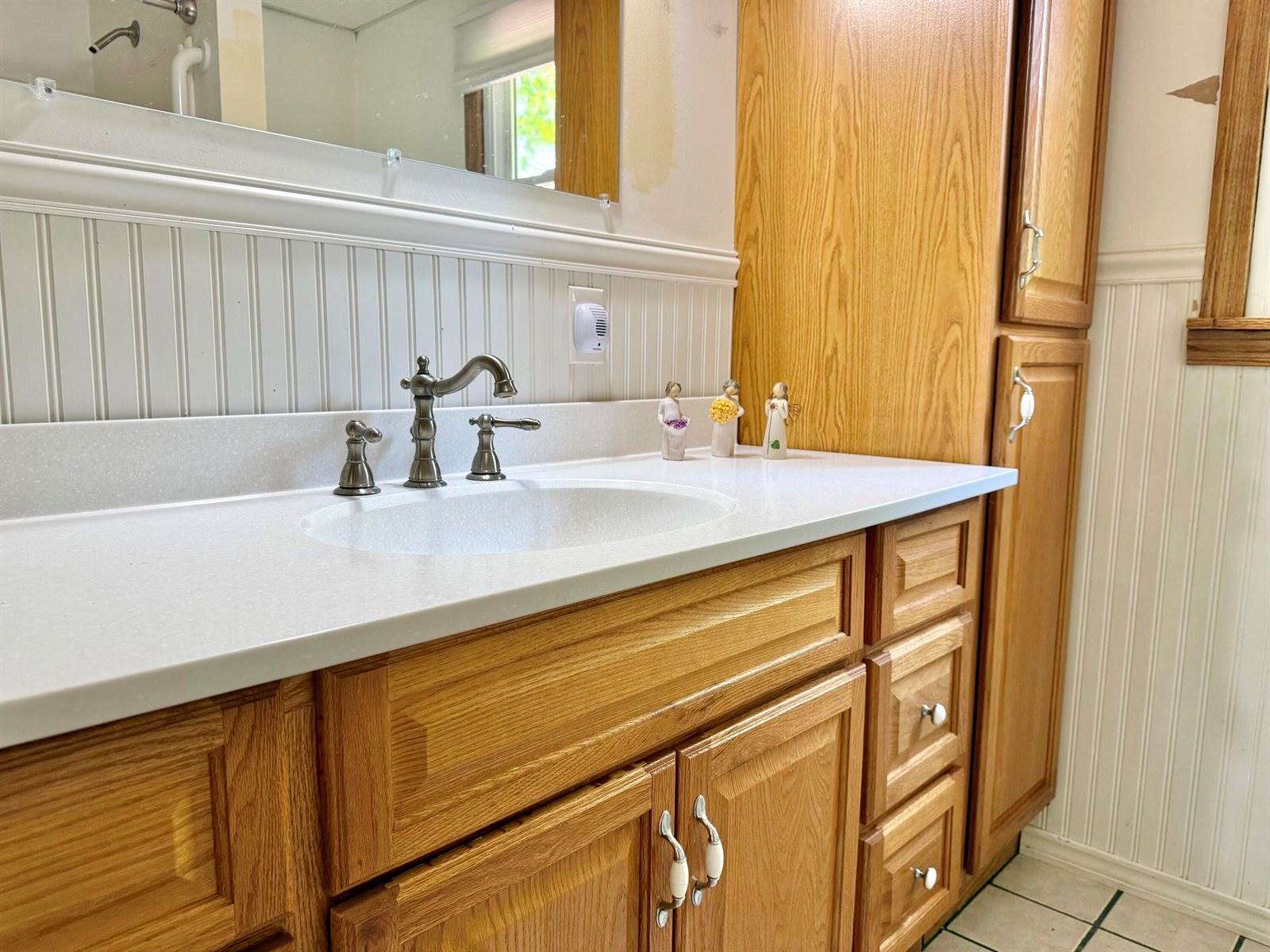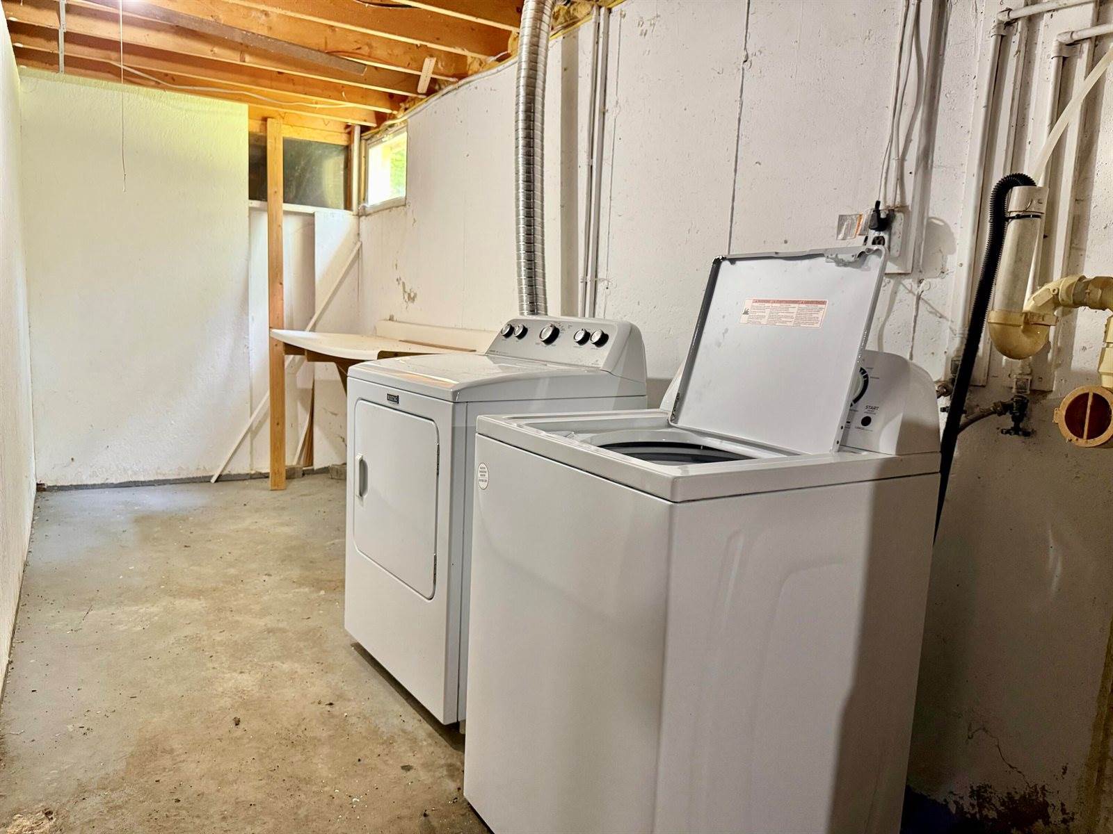 full bathroom are located on the first floor, while two additional bedrooms are upstairs along with an unfinished second bathroom—ready for your personal touch. The basement features a workshop area, laundry area and the home includes a radon mitigation system,
