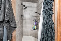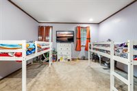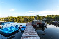 leads to the deck facing the water. Also on the first floor is a half bath, laundry room, and office. The second floor has a bedroom with a full bath and walk-in closet. There is a large family/great room with a balcony to enjoy the lake and a third bedroom.